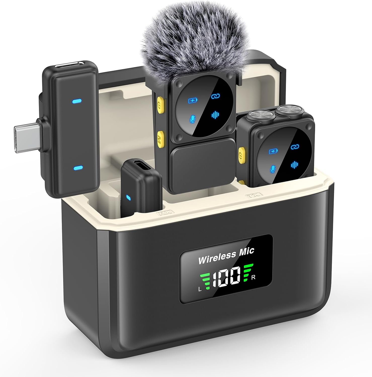 - Included Components : 1 x 80H Charging Case, 1 x Charging cable, 1 Ă— USB C Receiver+ 1 x Lightning Receiver, 2 x Windscreen Cover, 2 Ă— Multi-function Transmitters 1 x 80H Charging Case, 1 x Charging cable, 1 Ă— USB C Receiver+ 1 x Lightning Receiver, 2 x Windscreen Cover, 2 Ă— Multi-function Transmitters
