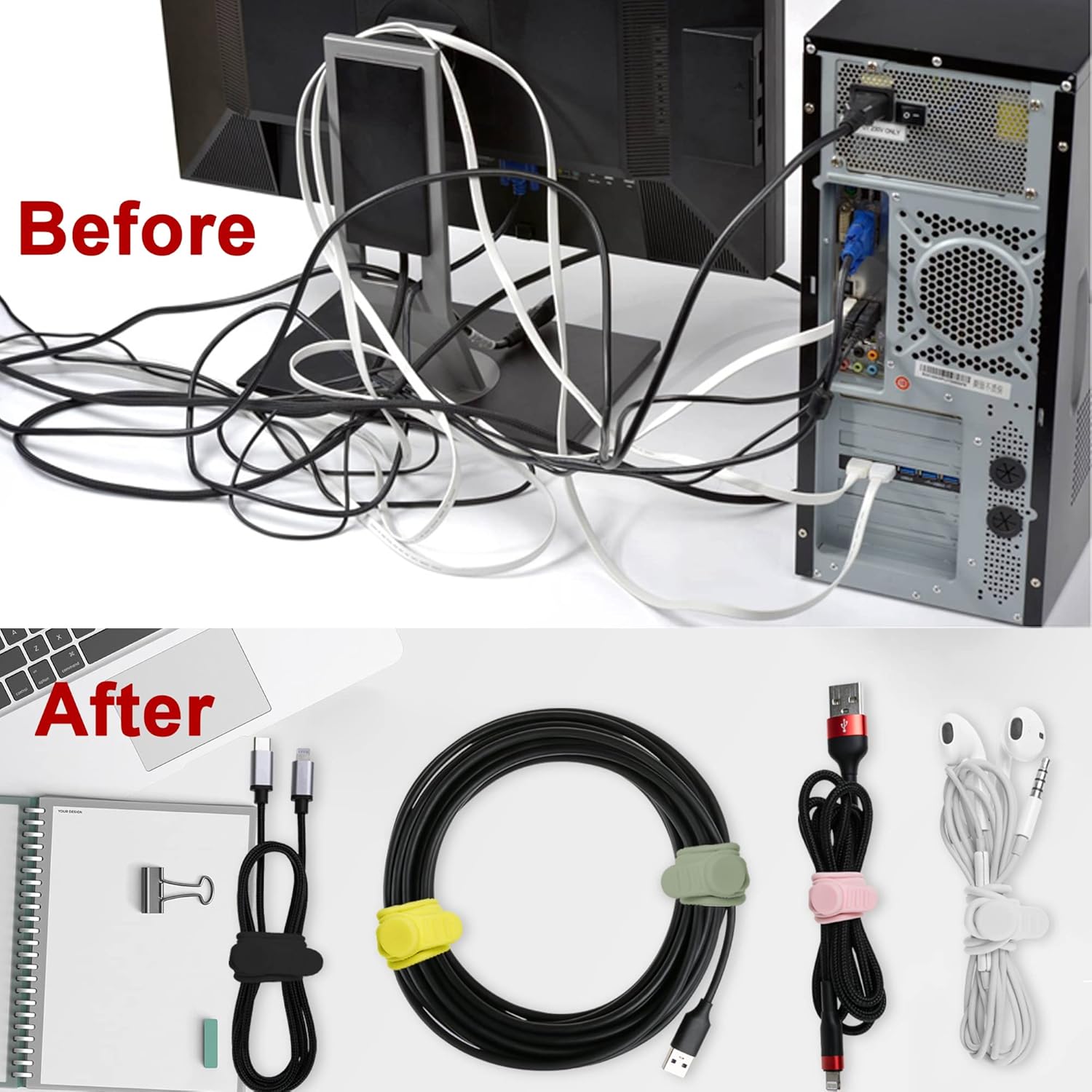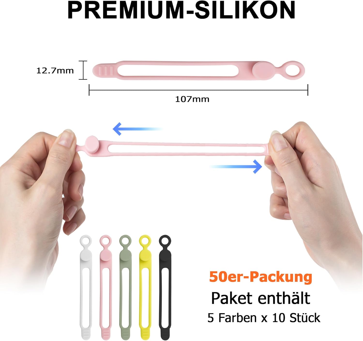 Nearockle 50Pcs Silicone Cable Ties Cord Organizer for Bundling Earphone, Phone Charger, Computer Cords, Reusable Cable Ties Wire Organizer in Home,Office,Kitchen,School (5 Colors)