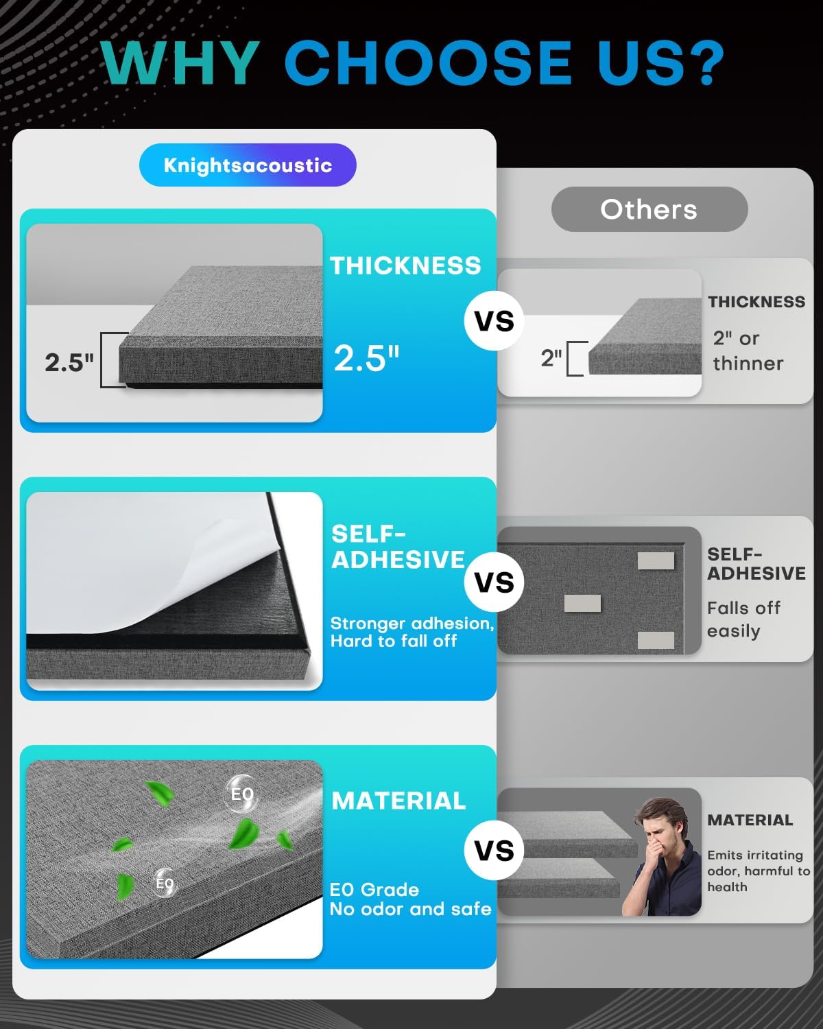 - SUPER STRONG SOUND ABSORPTION: The 2.5-inch thick professional sound-absorbing panel features an excellent sound absorption performance with an NRC of 0.95, which can provide a clearer and more pleasant sound environment. It works better than the 1-inch thick ordinary polyfiber board.