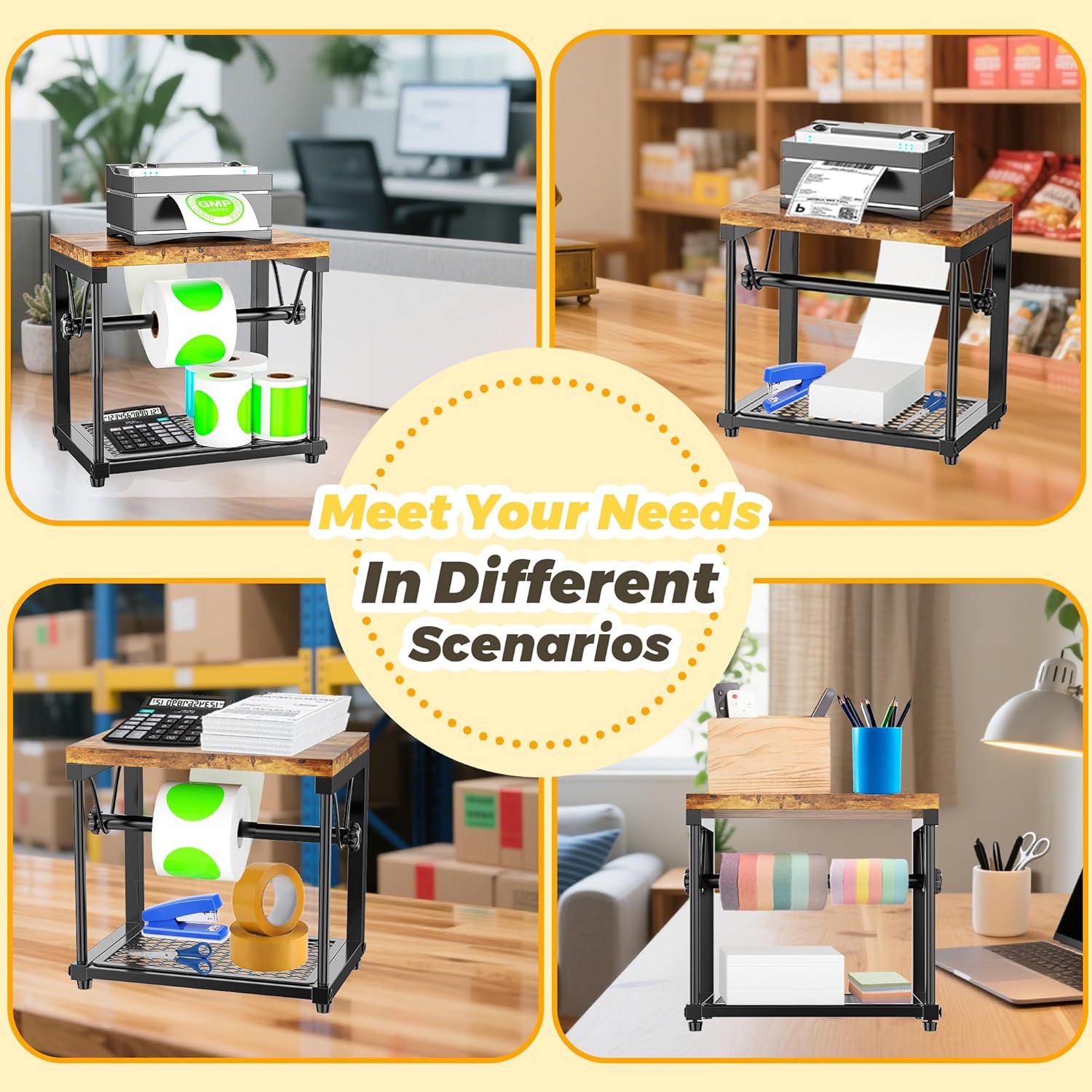 - 【Clear Division, Organized】The multifunctional sticker holder is designed with a three-tier structure, the top platform firmly supports the thermal printer, and the middle is equipped with a removable wooden pole, which is convenient for hanging rolled labels to avoid tangling; the bottom has a small platform for folded labels, pens, scissors, and other office supplies. Multi-area division helps you to improve work efficiency.
