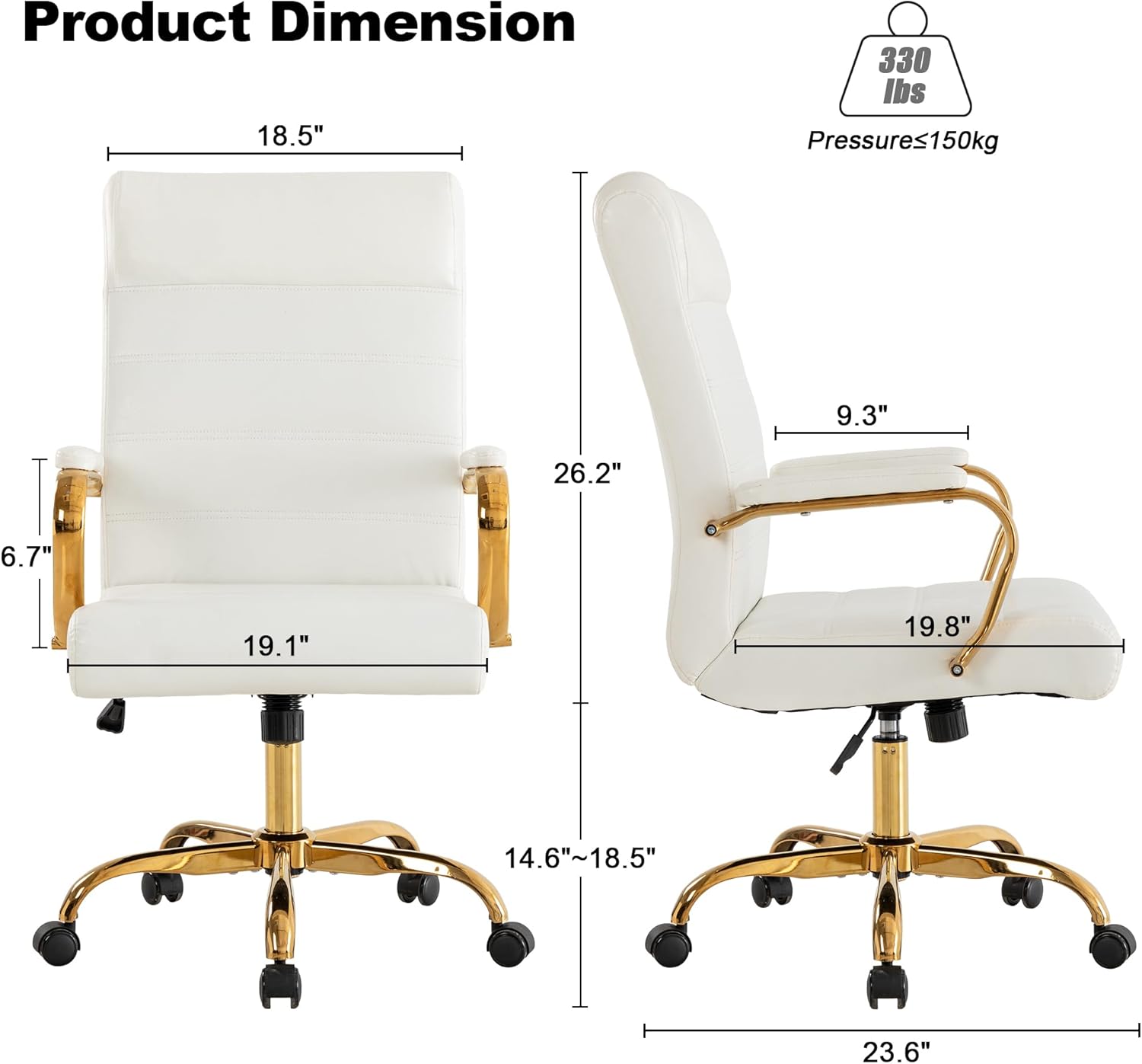 Office Desk Chair,Modern Leather Conference Room Chairs,High Back Home ofiice Chair,Adjustable Height Swivel Executive Computer Chair with Padded Seat and Armrest (White with Gold Frame)