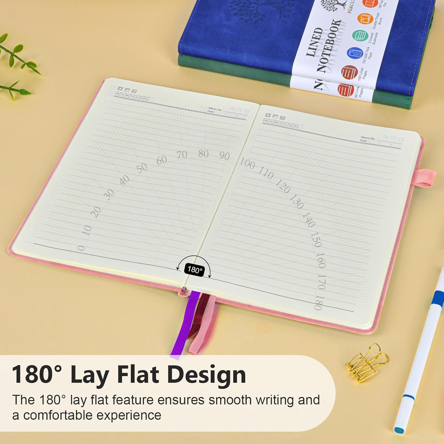 - ă180° LAY FLAT DESIGN & PREMIUM LINED PAPERă: Lay the notebook completely flat for easy writing in any settingâwhether at your desk, in a cafĂ©, or on the go. The 160 pages of 100 GSM lined paper (7mm spacing) offer a smooth writing experience, ideal for journals, work notes, school assignments, or Bible study notes, with minimal ink bleeding or feathering.