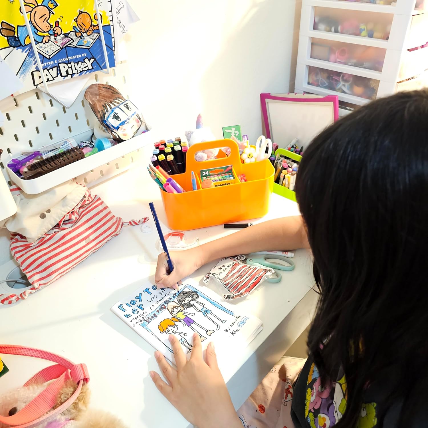 - Equipped with a sturdy and comfortable handle, this portable caddy allows you to effortlessly carry your essentials wherever you go. Whether you're moving from room to room, heading to a class or workshop, or embarking on a creative adventure outdoors, this caddy ensures your items stay secure and easily accessible.