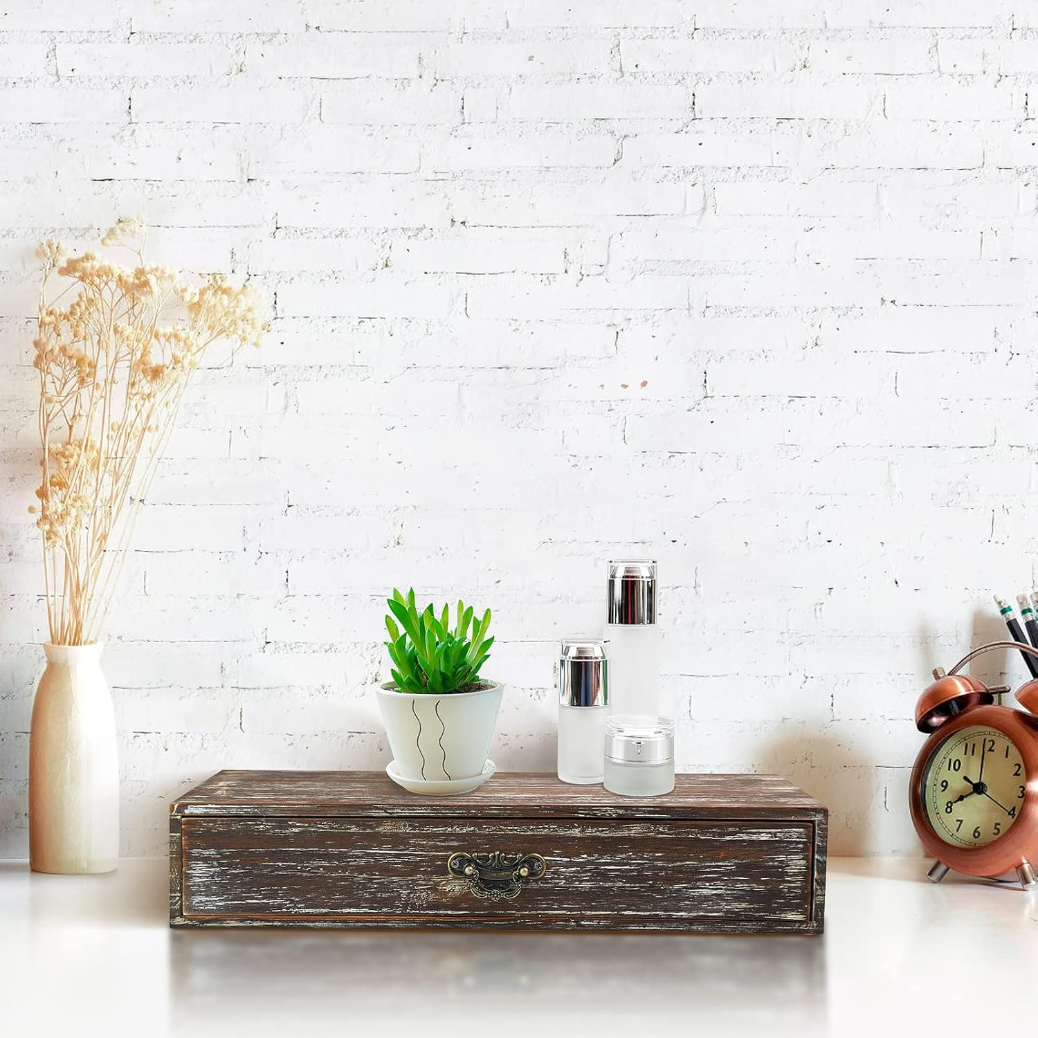 - Two styles: We have created two table effects for this drawer storage box. One is a simple solid wood style that can be paired with various home styles, and the other is a rustic rustic retro style that is more decorative and suitable for American countryside homes. We have paired it with a vintage handle, which adds to the overall decorative effect. You can buy two to stack and use.