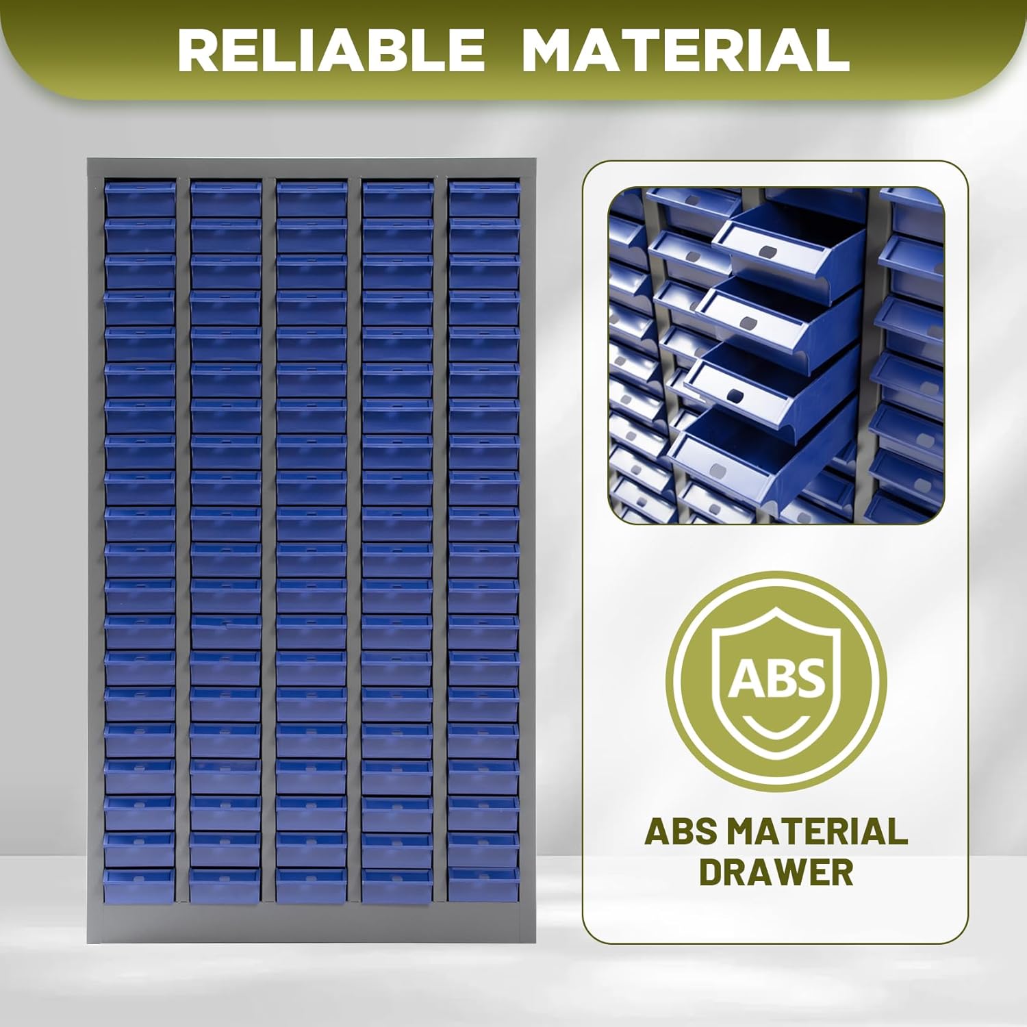 - ✅【100 Drawers Large Capacity】This parts cabinet features 100 small drawers (7.6×3.8×1.6 inch each) in a compact frame (25.39×8.66×46 inch), perfect for organizing thousands of small items. Each drawer is equipped with anti-slip stops to prevent accidental falling.