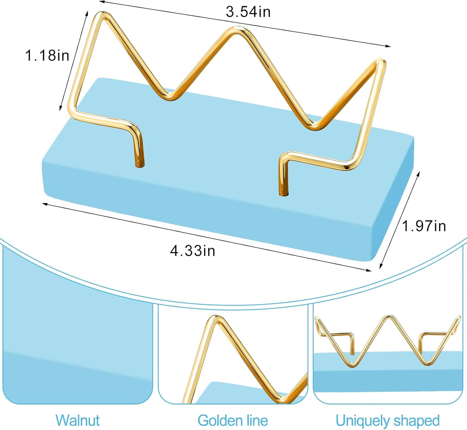 Amyhill 2 Pieces Wood Business Card Holder for Desk Wooden Business Card Display Stand Postcard Holder for Office Home Desktop (Blue Color, Gold)