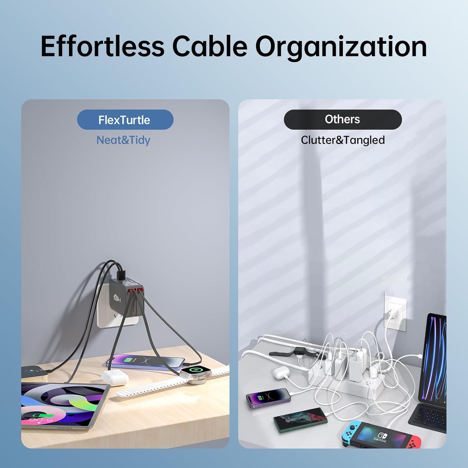 - 【Space-Saving Retractable Design 】-The FlexTurtle retractable phone charger wall plug features three 3.2ft retractable cables (USB-C, Lightning, and Apple Watch), eliminating clutter. Perfect as a phone charging station for desks, nightstands, or as travel accessories for women and men