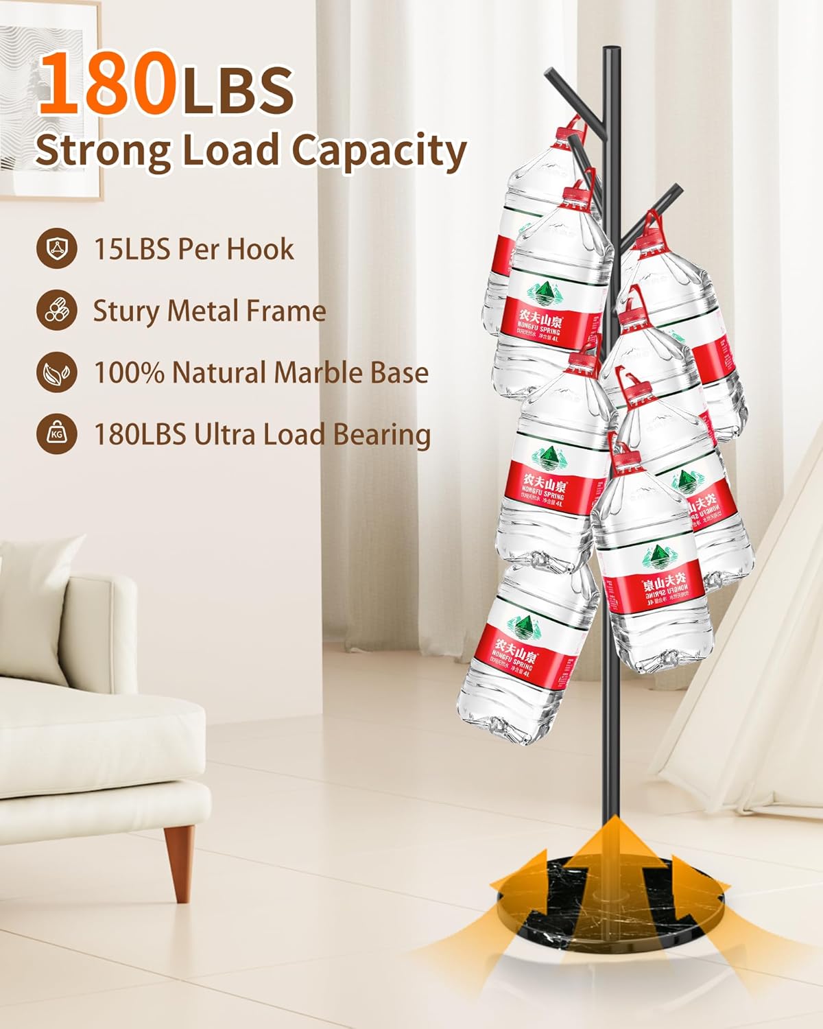 - MARBLE BASE COAT RACK: EZIVIEZ standing coat rack base is crafted from 100% natural marble. Each base is hand-selected from natural mining and has a unique natural texture. This heavy marble base is thickened and widened, and can easily bear 180 pounds. This coat rack stand can easily hang heavy winter clothes, jackets, and large handbags, and it is stable without shaking or tipping over