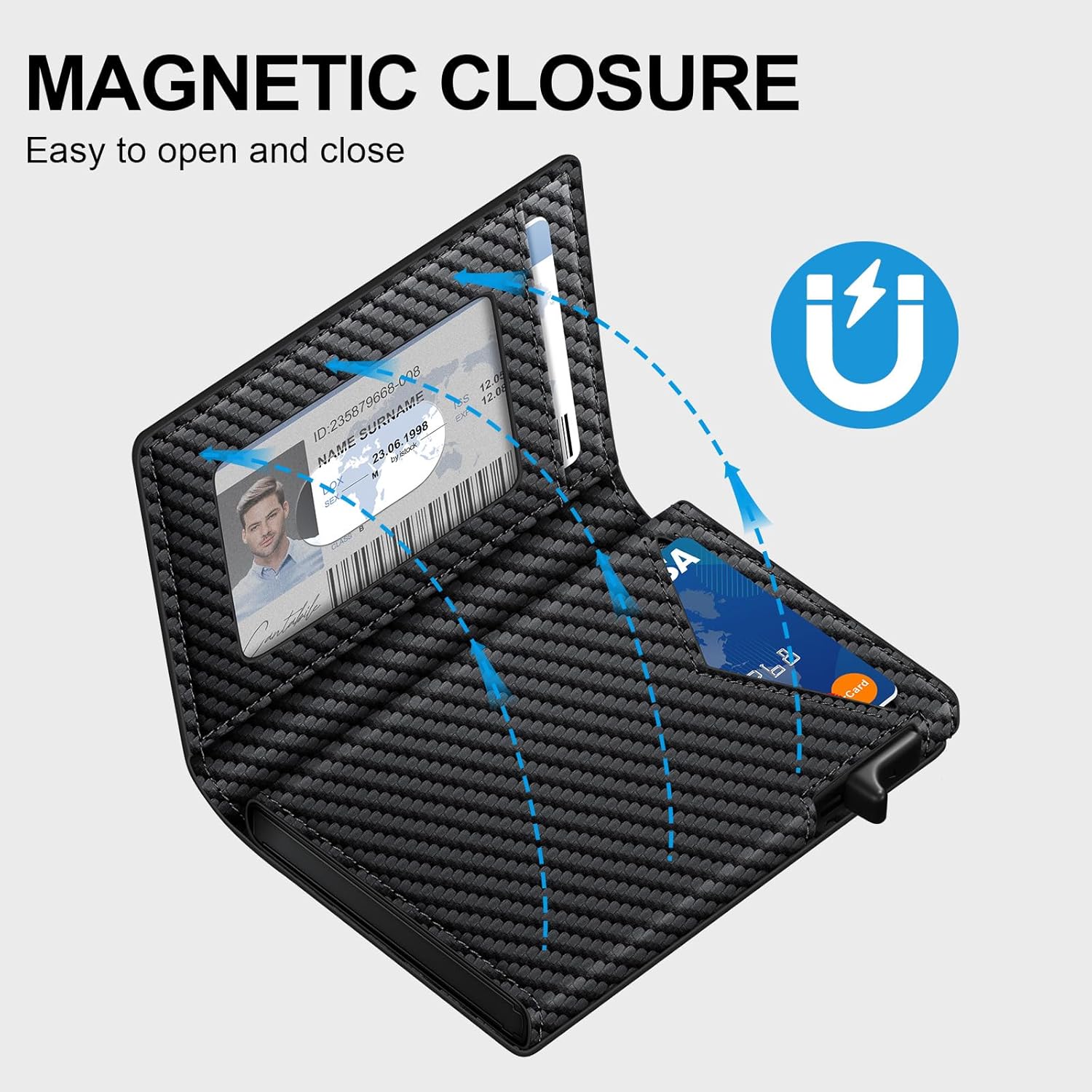 Wallet for Men, RFID Wallet with Money Clip & ID Window, Minimalist Pop Up Credit Card Case Holder 10-12 Cards, Bifold Slim Smart Wallet for Front Pocket, Compact Metal Wallets, Gifts for Men, Carbon