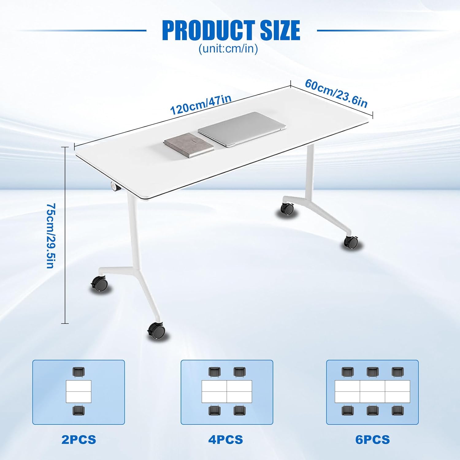 Conference Table, Folding Conference Desk Modern White, Seminar Table with Wheels, 2-10 People for Office, Meeting Break Room (4, 1915, 47IN)