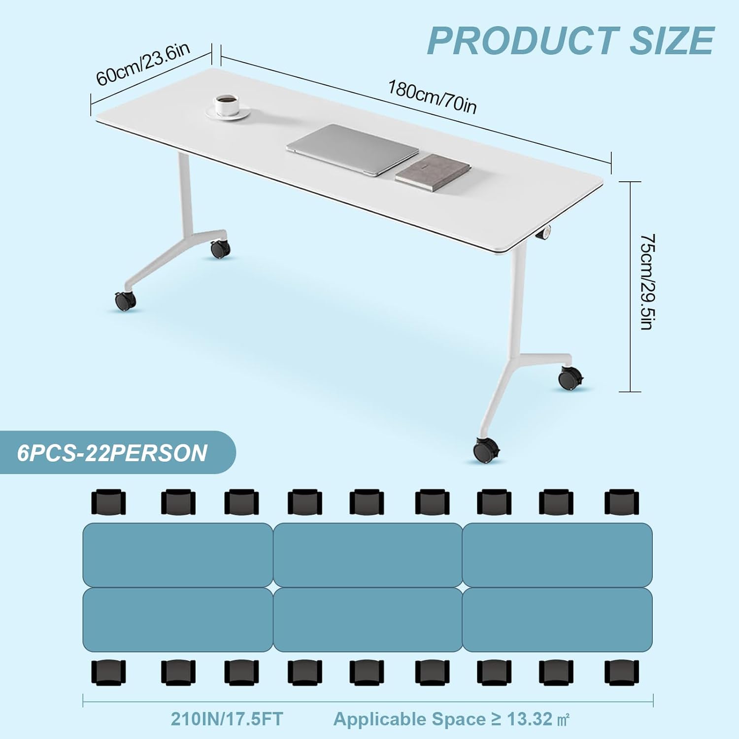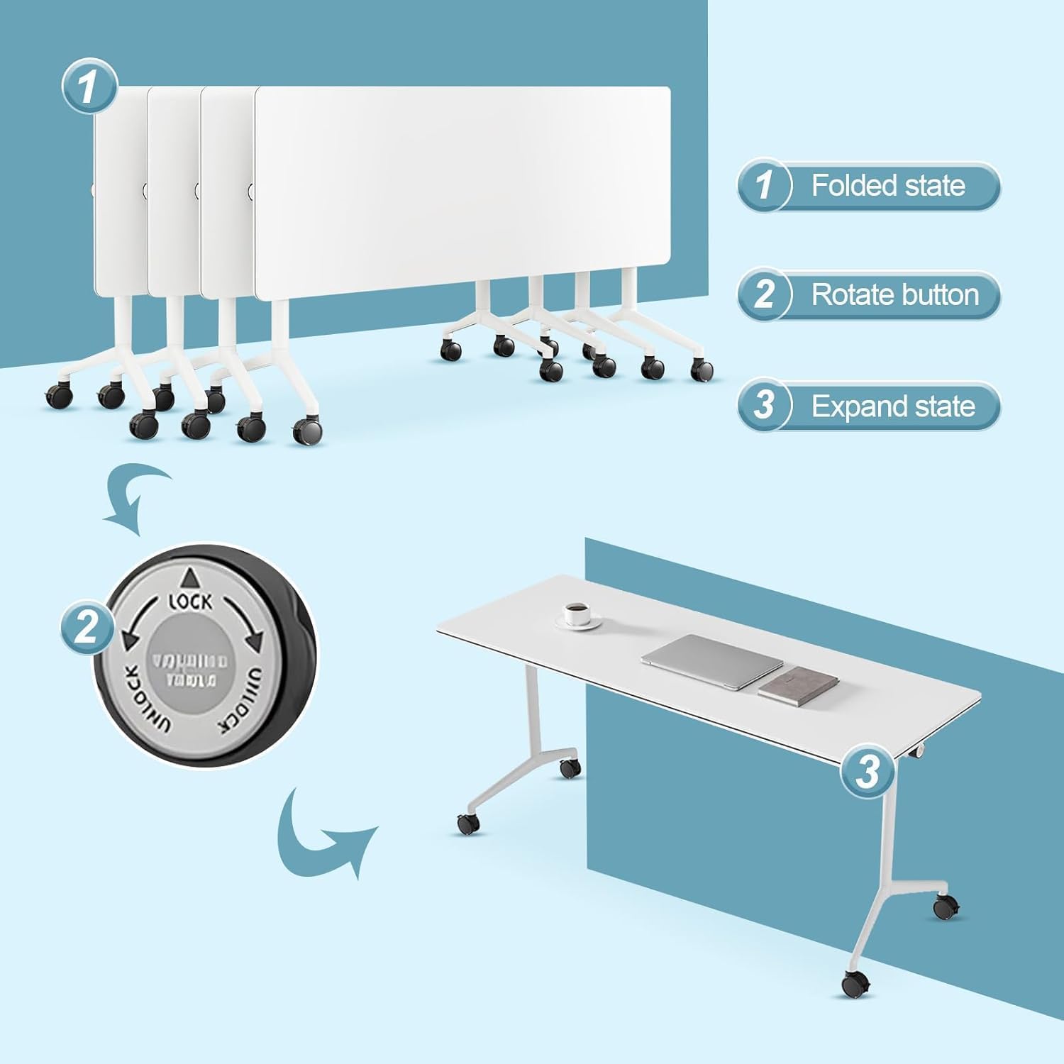 Conference Table, Folding Conference Desk Modern White, Seminar Table with Wheels, 2-10 People for Office, Meeting Break Room (4, 1915, 71IN)