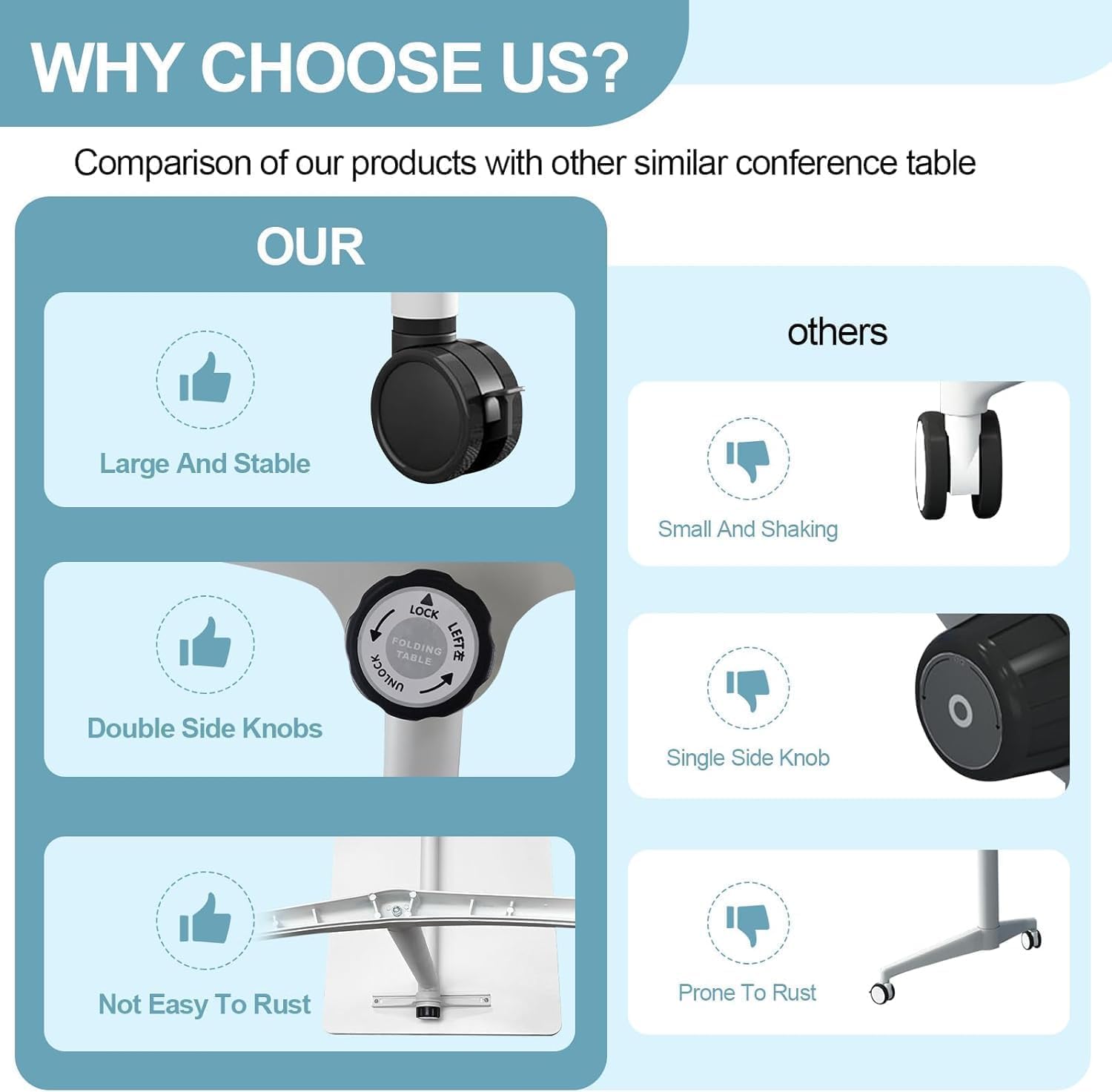 - â ă360° MOVEMENTăThe conference room table is equipped with 4 silent universal wheels. The casters can quickly move 360° to any corner, making it flexible and convenient, saving effort and worry. Conference tables can be arbitrarily combined according to different conference grouping needs.