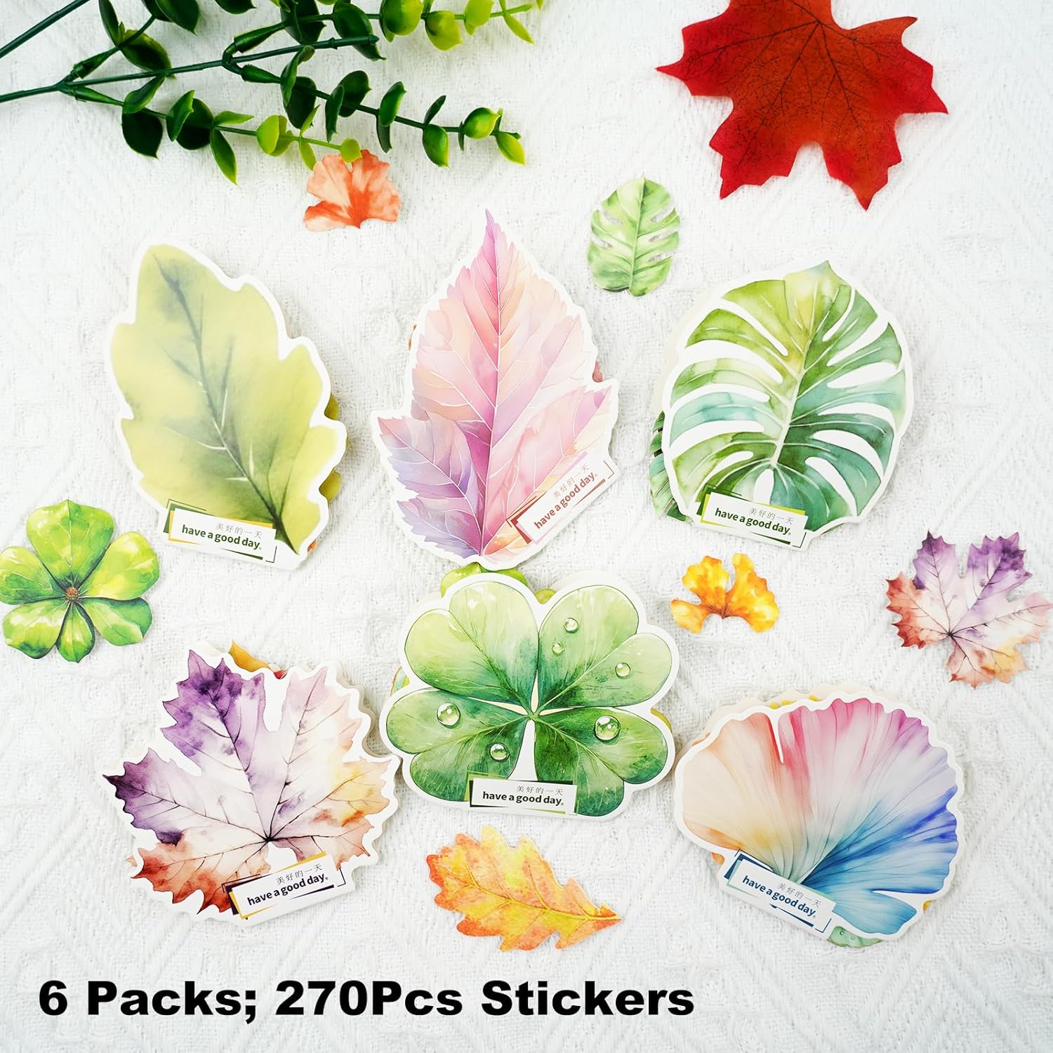 - Abundant Botanical Designs: Includes 6 themed sets with 15 unique watercolor leaf designs per set totaling 270 stickers that bring seasonal and botanical charm to your scrapbooks and journals