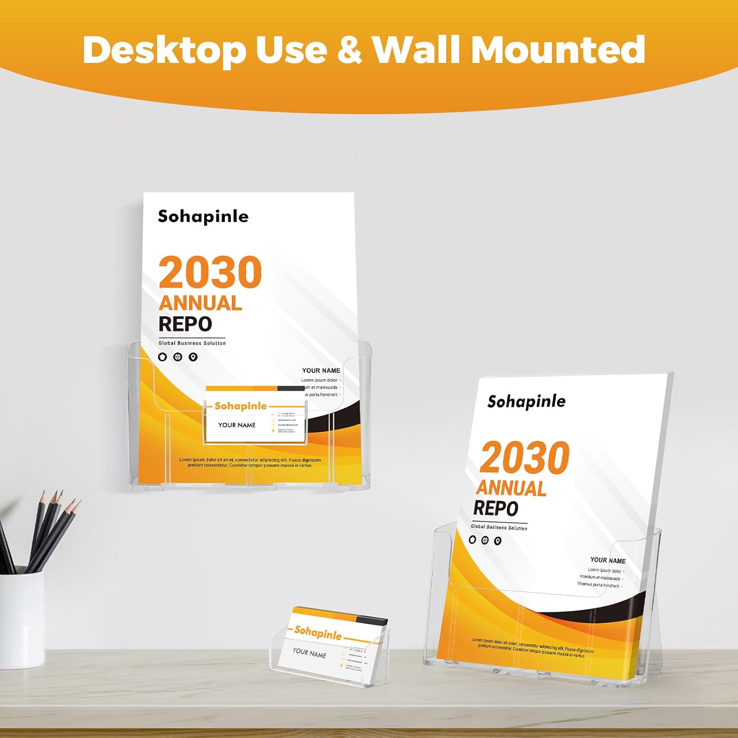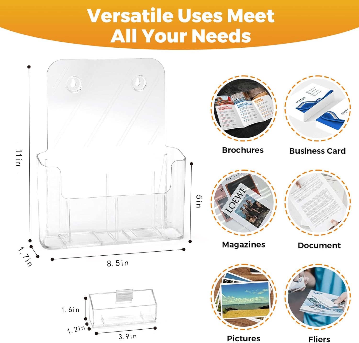 - Built-in Convenient Business Card Holder: Each flyer holder includes a individed card holder, adding unmatched functionality. Easily slide in your contact information, price tag, or product details, keeping essential info neatly organized and readily visible right alongside your displayed items.