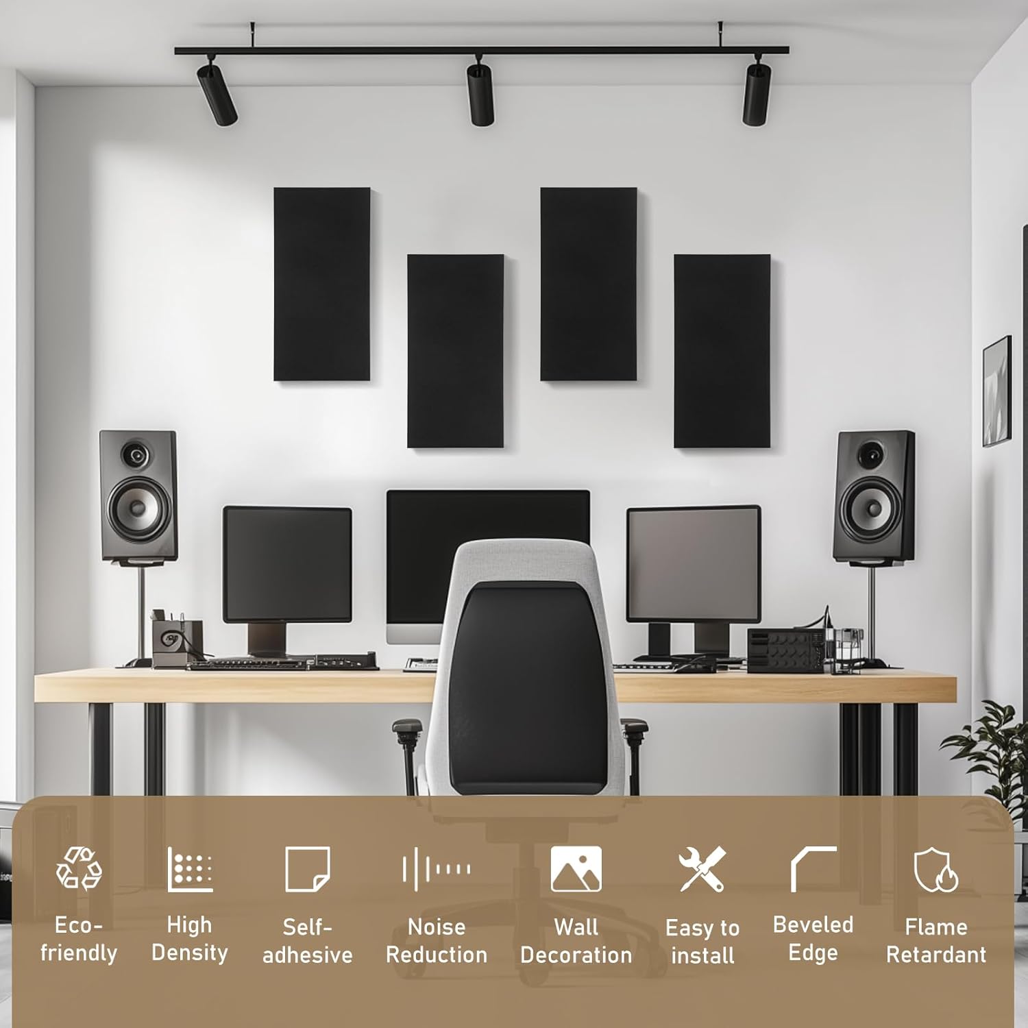 Fabric Sound Proof Foam Absorbing Acoustic Wall Panels 23.6’’x11.8’’ 4PCS Noise Cancelling for Room Home Studio Office Theater, Black