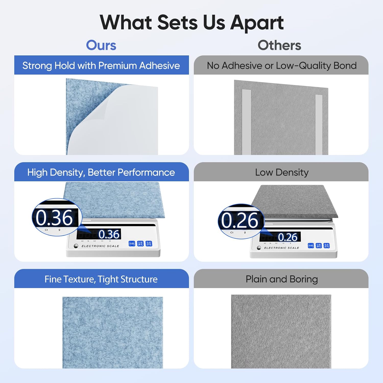 - Effortless Installation -- Each acoustic panel comes with a strong self-adhesive backing—just peel and stick. No tools, nails, or extra adhesives needed.