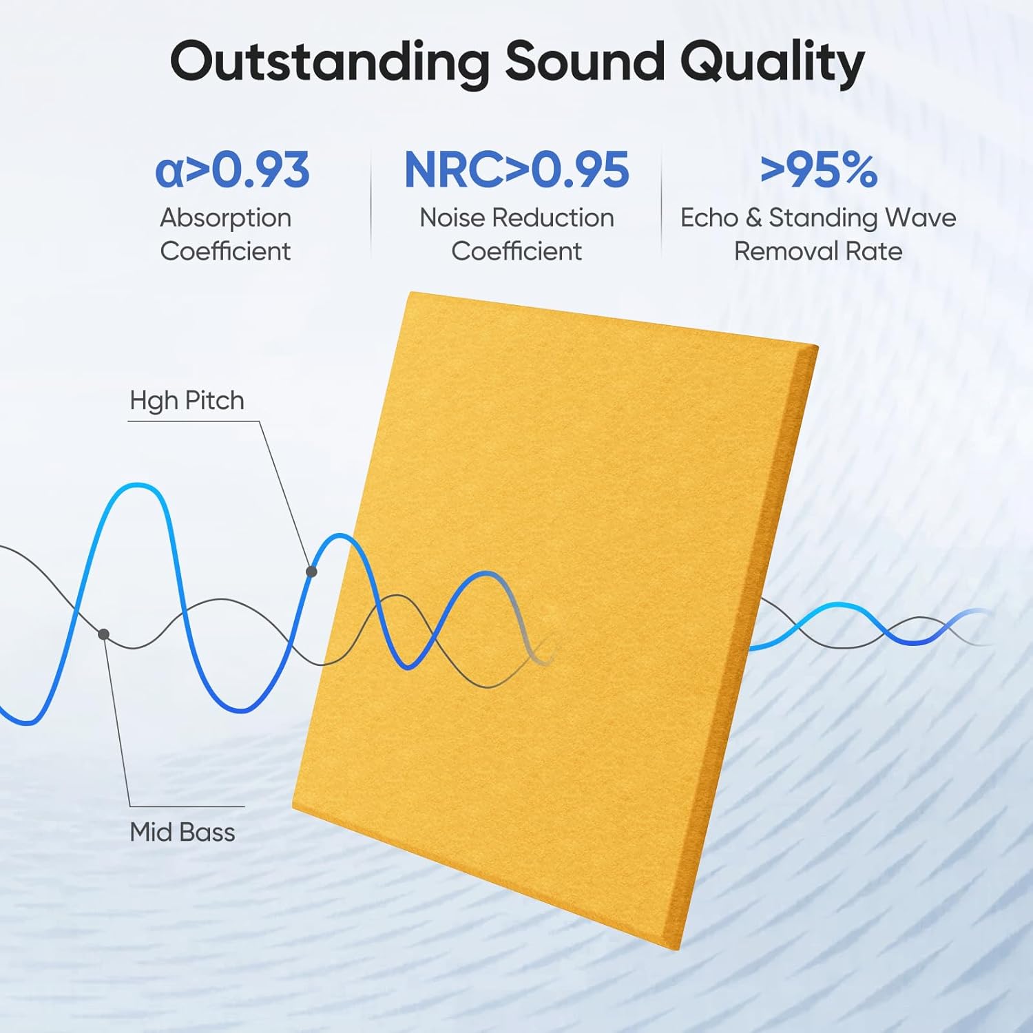 - Exceptional Sound Absorption -- Crafted with high-density polyester fiber (420 lb/m³), our acoustic panels achieve a sound absorption coefficient of up to 0.95, effectively minimizing echoes and reducing background noise for a comfortable environment.