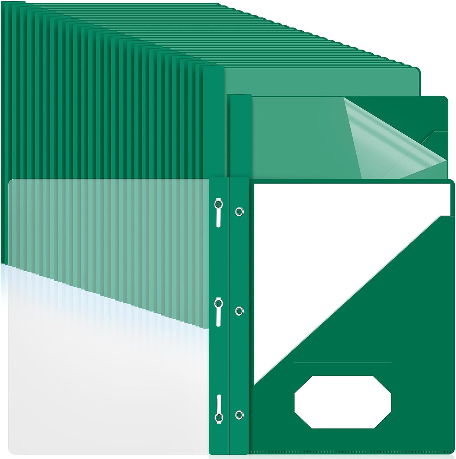 Patelai 48 Pcs Plastic Folders with 2 Pockets and 3 Prongs Home Folders with Card Slot Letter Size Heavy Duty Report Covers for Back to School(Green,Simple Style)