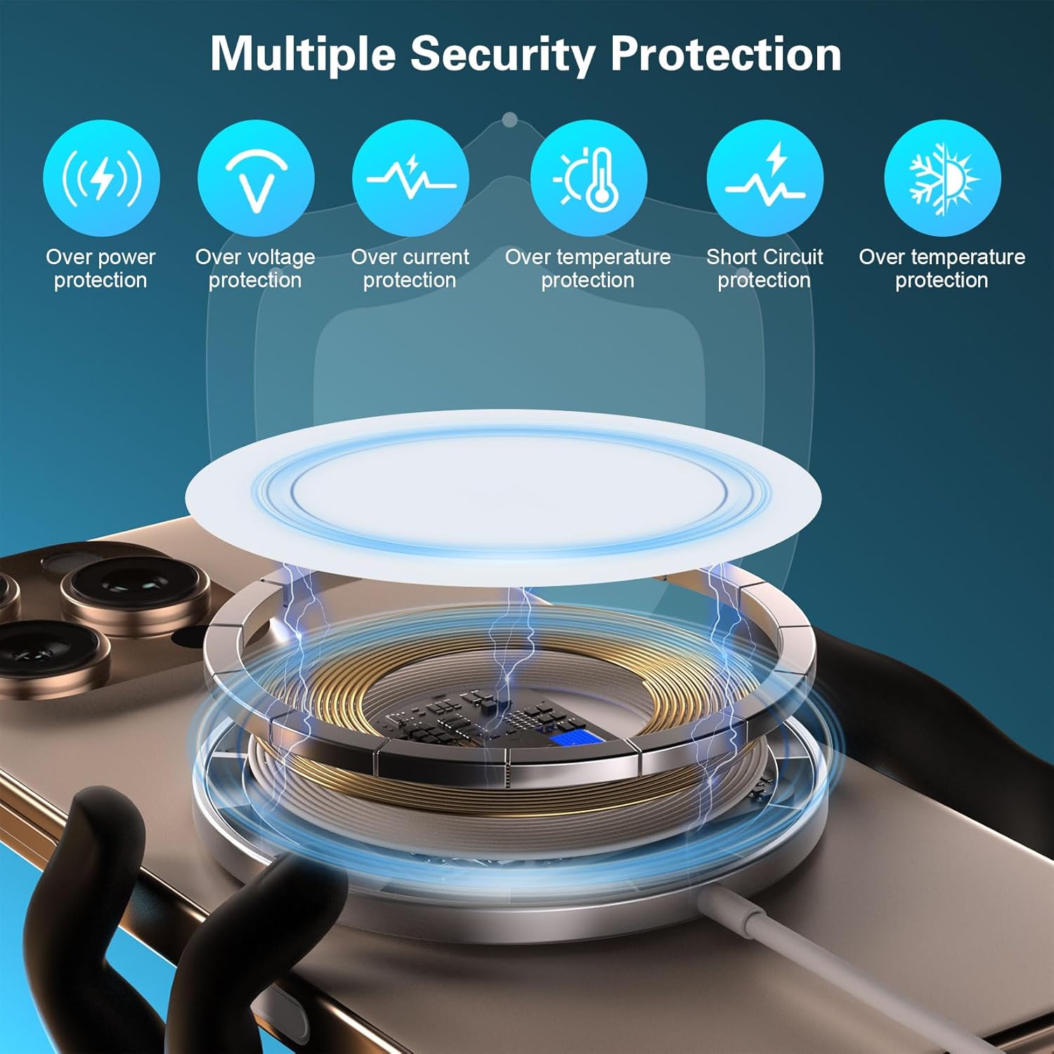 - 【Wireless Charger High Efficiency & Safe】This Wireless Charger MagSafe Charger Pad for iPhone uses Advanced Technology and made of High-Quality Materials and Advanced Mag Safe Magnetic Coil,Automatically Adjusts the Voltage to Prevent Over Heating, Over Charging, Over Voltage,Short Circuits and Other Conditions to Always Charge Your Device Safely and Securely,Protect Your Equipment Safe and Fast Charging,Provides You with a Better and Safer Charging Experience.