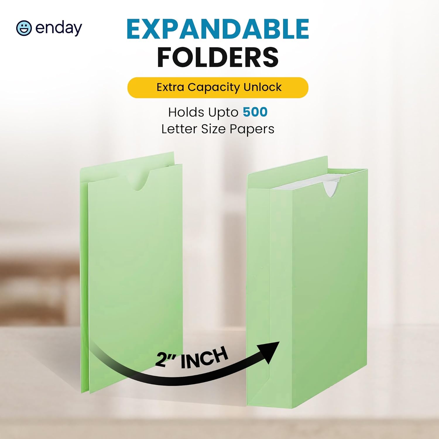 Enday 2 Inch File Jackets (25 Pack)- Assorted Colors Expandable File Folders - Straight Cut Tab - Letter Size Jacket Folders for Home & Office, Pocket File Folders in Red, Yellow, Blue, Green & Orange