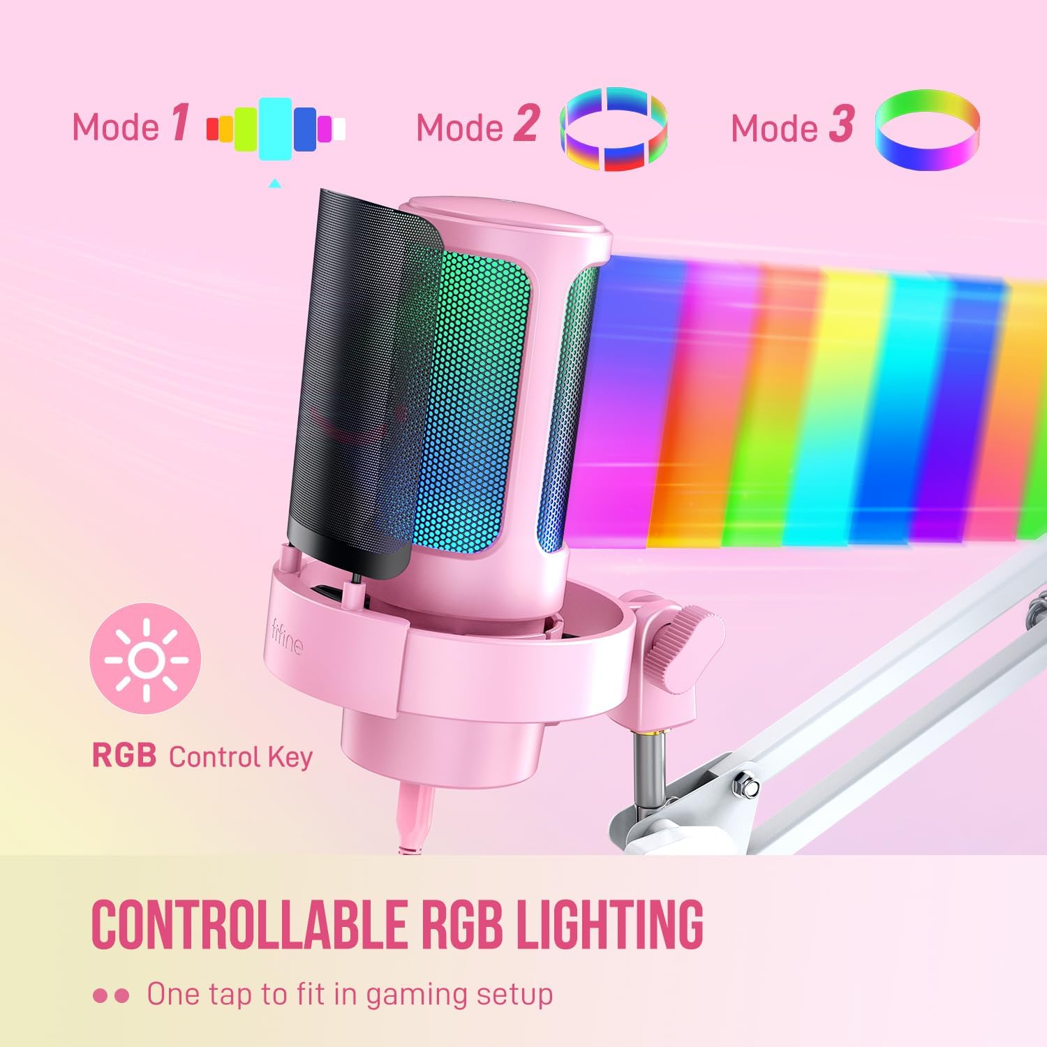 FIFINE USB Streaming Microphone with Boom Arm, Gaming Mic Kit for PC PS4/PS5, Podcast Microphone for Podcast with RGB Control, Mute Button, Gain Knob, Headphones Jack, Pop Filter-A8T Pink
