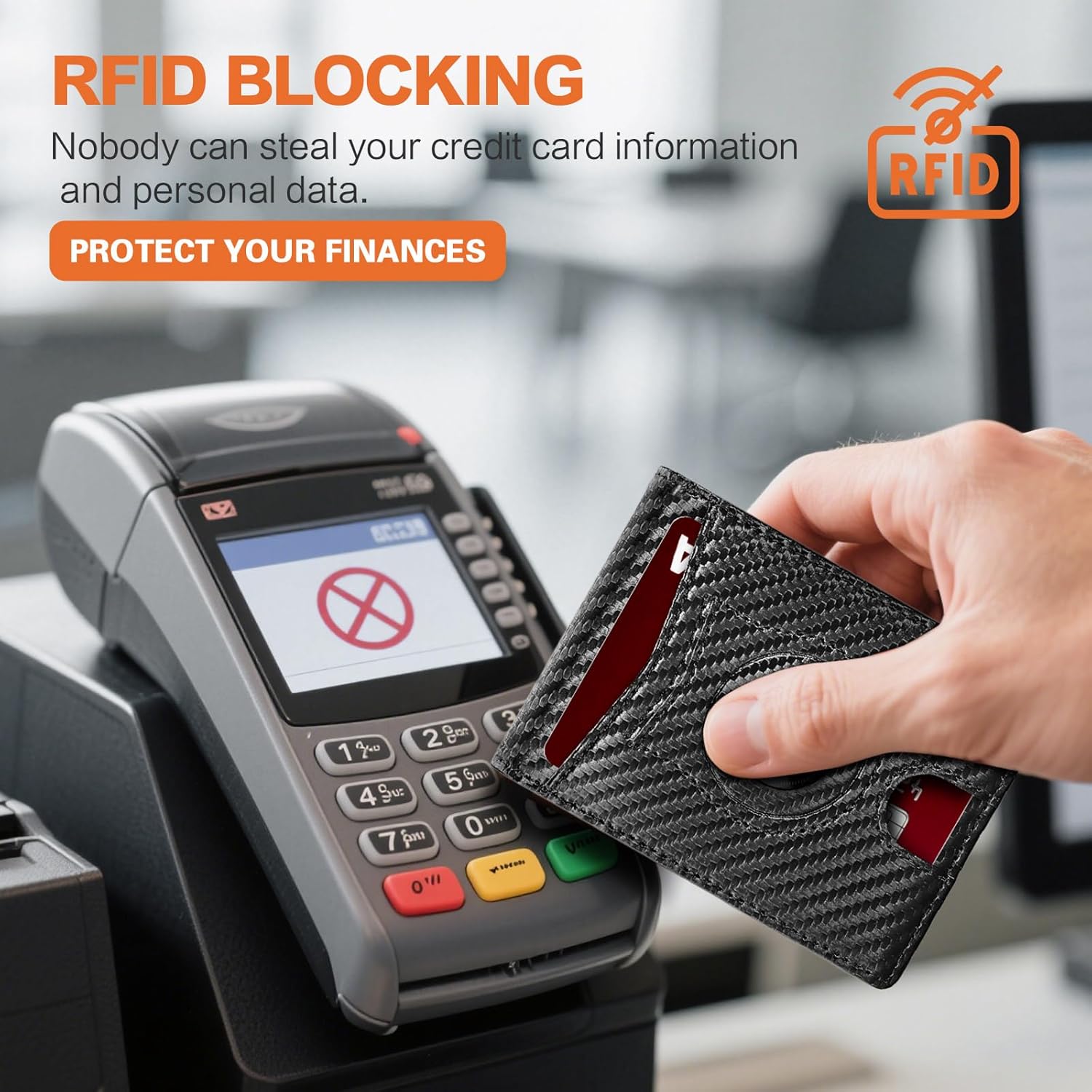 - High Quality & Lifetime Warranty:This men slim carbon fiber wallet crafted with high-quality durable leather for wear-resistant & comfortable use.mens leather wallets Lifetime coverage against peeling/tearing.for men's wallets 24/7 customer support with instant quality solutions