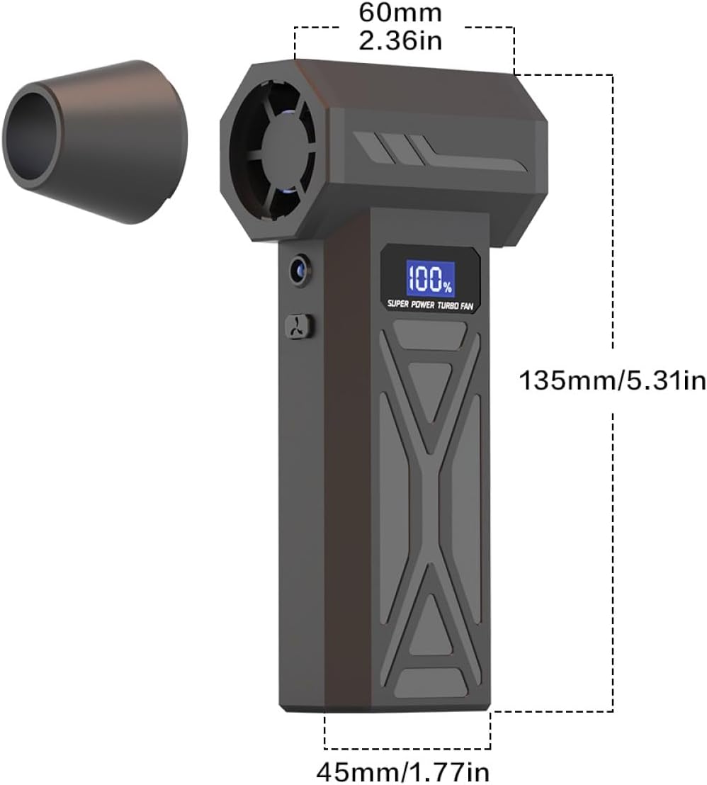 - 【Multi-Purpose】The electric air duster is equipped with 5 nozzles and 5 brushes. You can cleaning off crumbs, hairs, dust from PC, keyboard, car seat, sofa, fax machine, printer, air conditioner, computer; As well as, you can even inflate swimming rings, air cushions, kayaks etc (To protect the battery, inflate only use 1st speed); Electric air blower also can blow fire when barbecue.