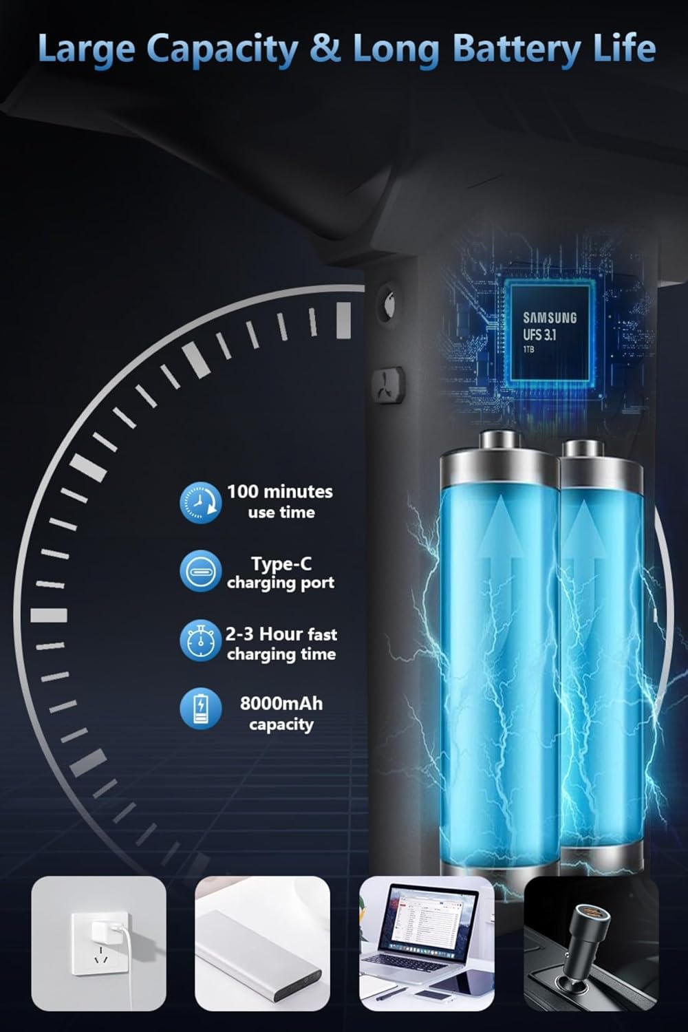 - 【Fast Charging & LED Display】The compressed air duster has a built-in 4000mAh battery, which can run continuously for 20-90 minutes. Comes with USB-C fast charging cable, fully charged within 3-4 hours, high-definition LED display screen which allows you to view the remaining battery level and the wind gear. Rechargeable air duster designed for deep cleaning, the built-in LED light illuminates your cleaning area upon activation.