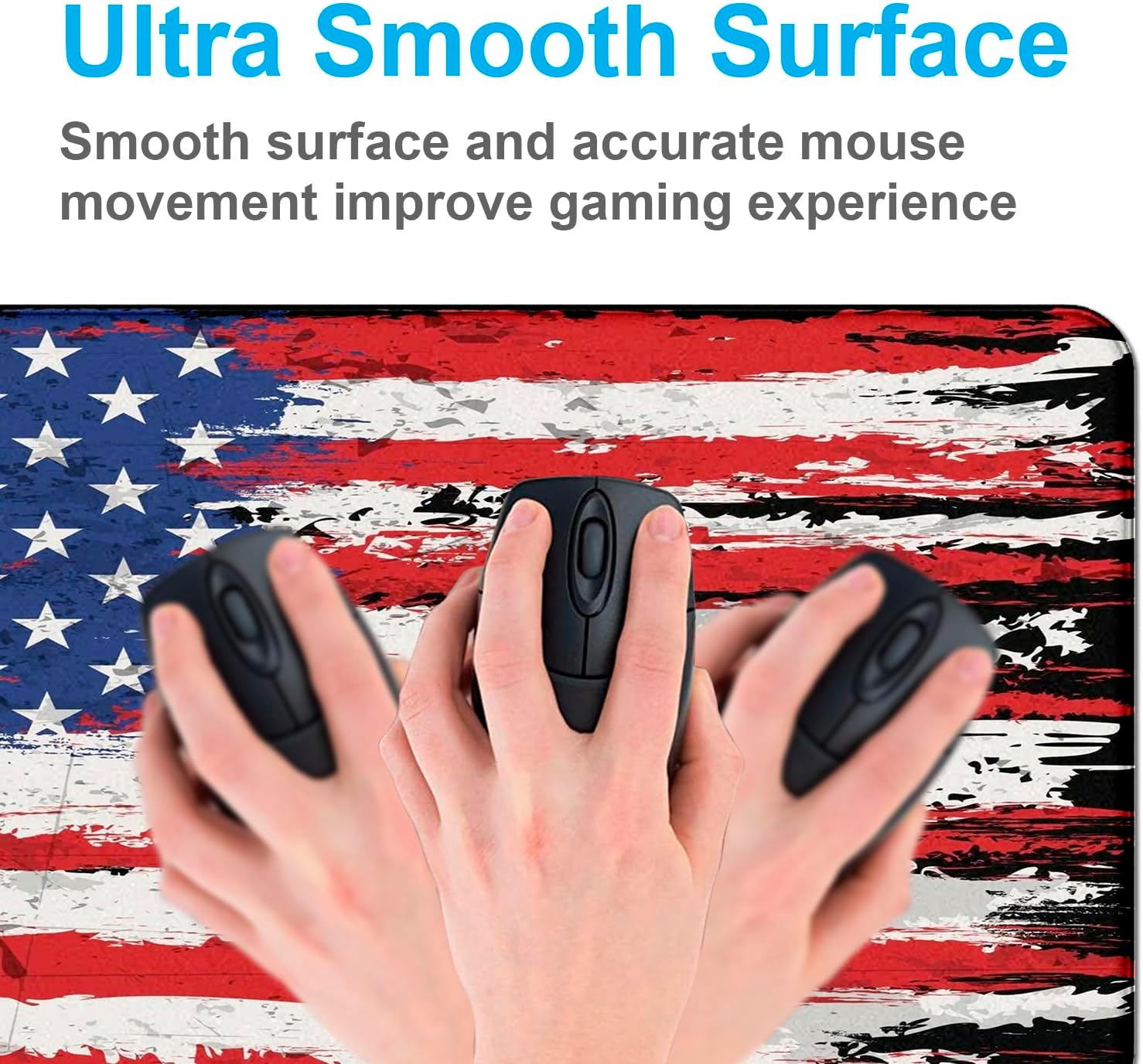 Oversized American Flag Computer Desk Pad, Non Slip Keyboard Pad, Custom Thick Seam Edge Office and Home Mouse Pad 35.4 x 15.7 Inches