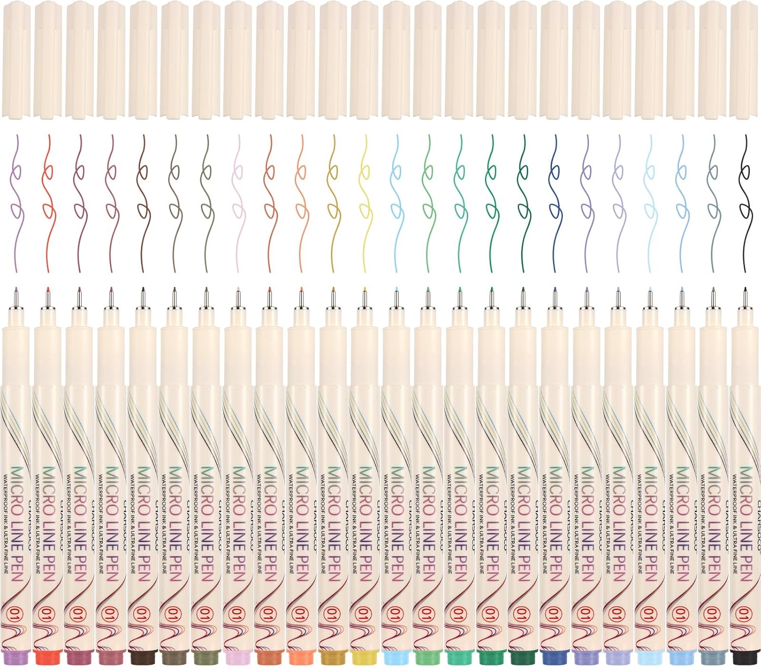 - 【Micro Pens Multi-Color Set】Unleash your creativity with our pack of 24 exquisite micro pens, featuring a fine 01/0.25mm tip in a spectrum of brilliant colors. Perfect for sketching, note-taking, hand lettering, and any form of artistic expression, these pens cater to all your creative needs.