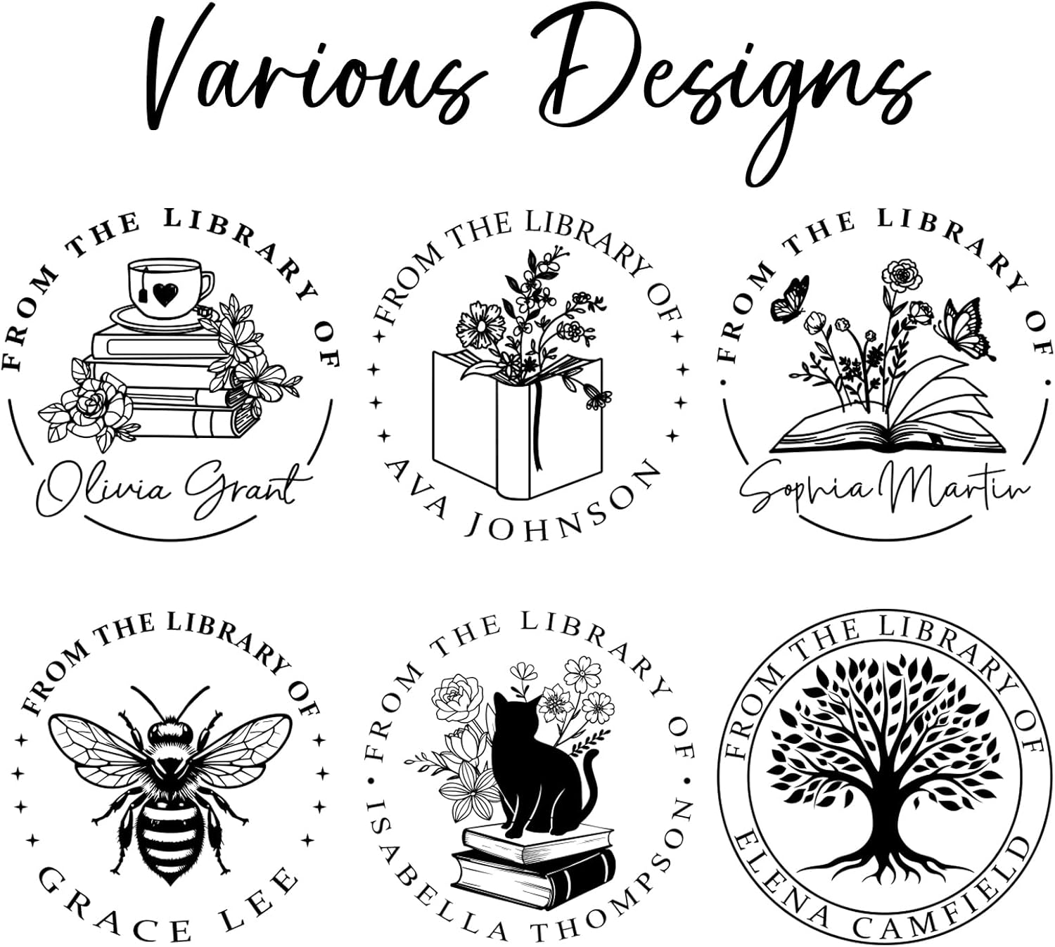 - Custom Book Stamps: We have designed several popular styles. Just upload your signature, special date or favorite text, click "Customize Now" to get a unique library stamp!