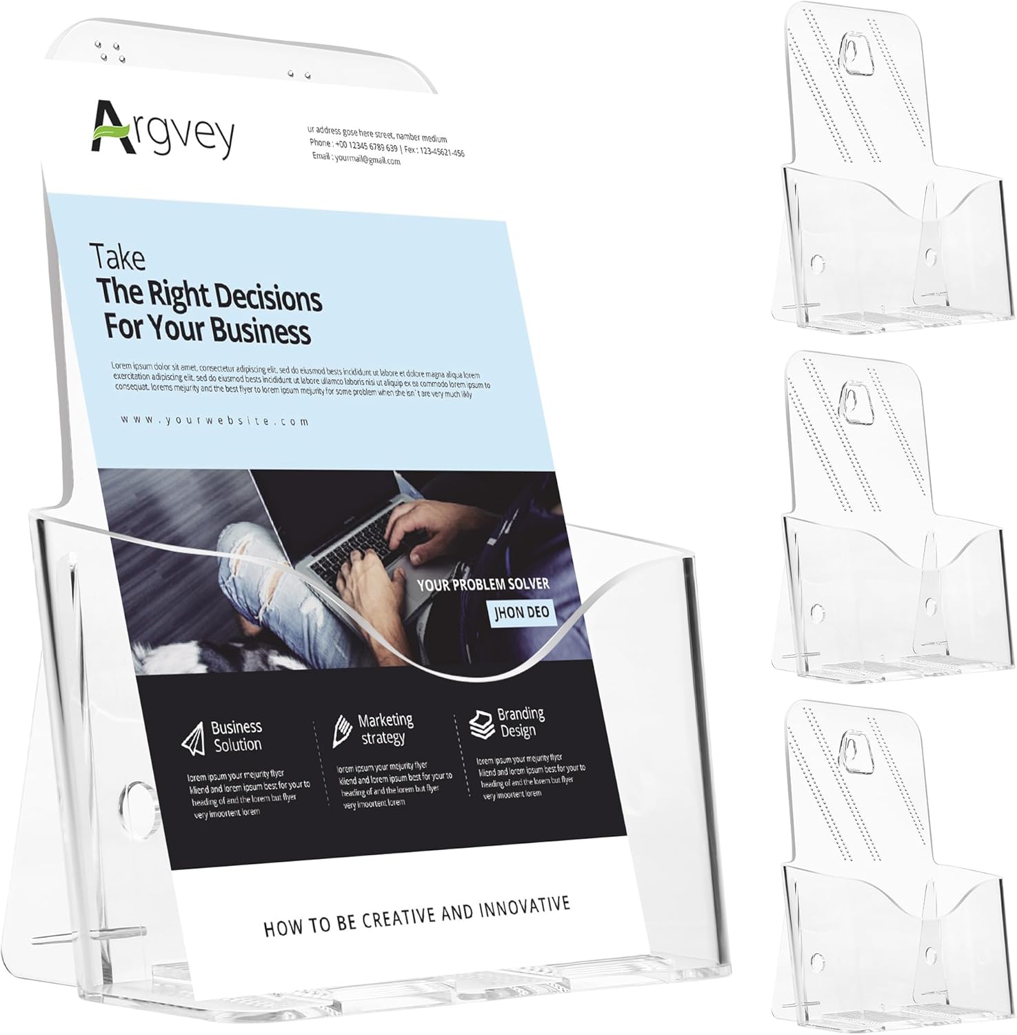 - 【Superior Acrylic Material】The Argvey half-fold brochure holder (8.5" x 5.5") is made from premium 2 mm-thick crystal-clear acrylic that is non-toxic, odor-free, and built for long-term use. Each unit is finely polished for smooth edges and a sleek finish, ensuring it’s both safe to handle and visually appealing.