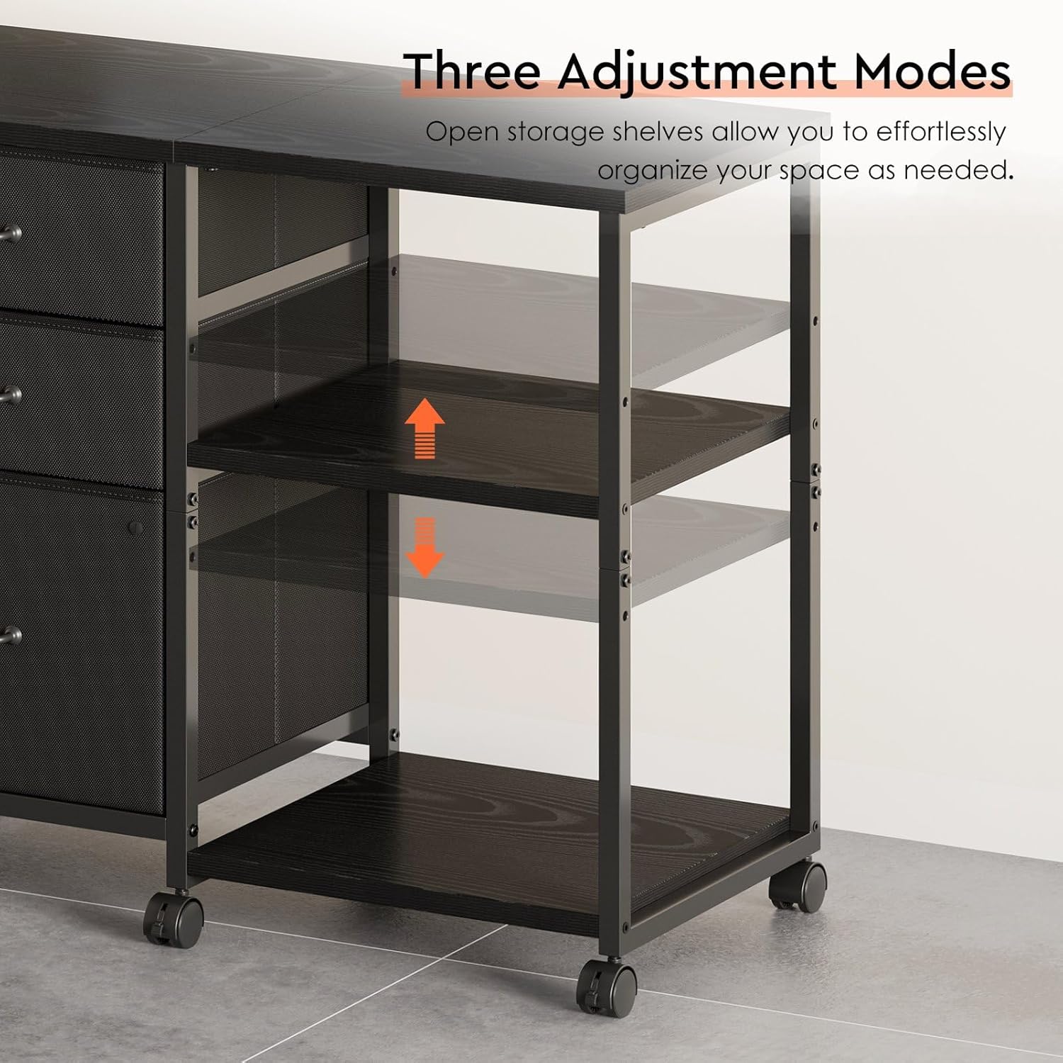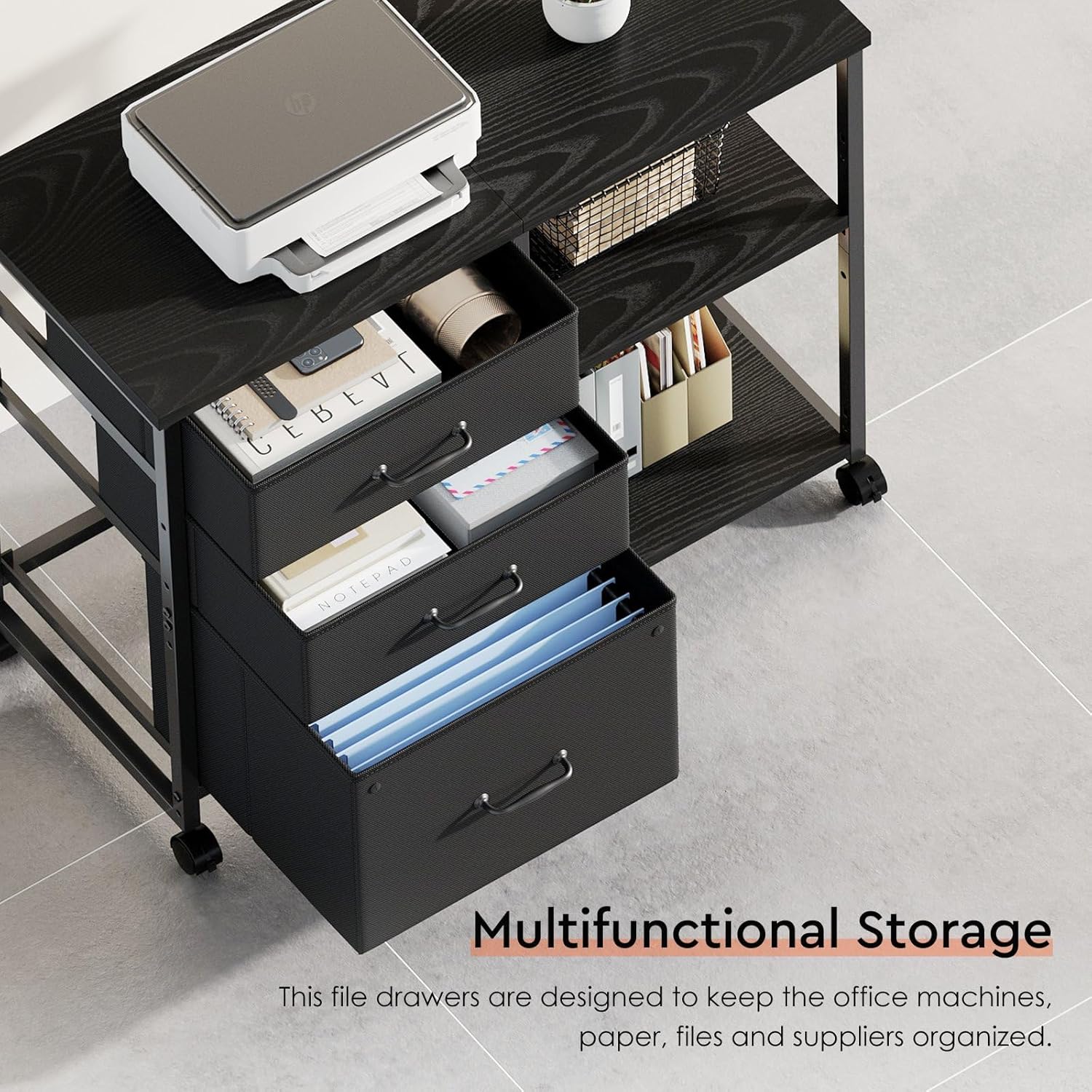 3 Drawer File Cabinet with Wheels Rolling Printer Stand with Open Storage Shelf Fabric Lateral Filing Cabinet for Home Office,Black