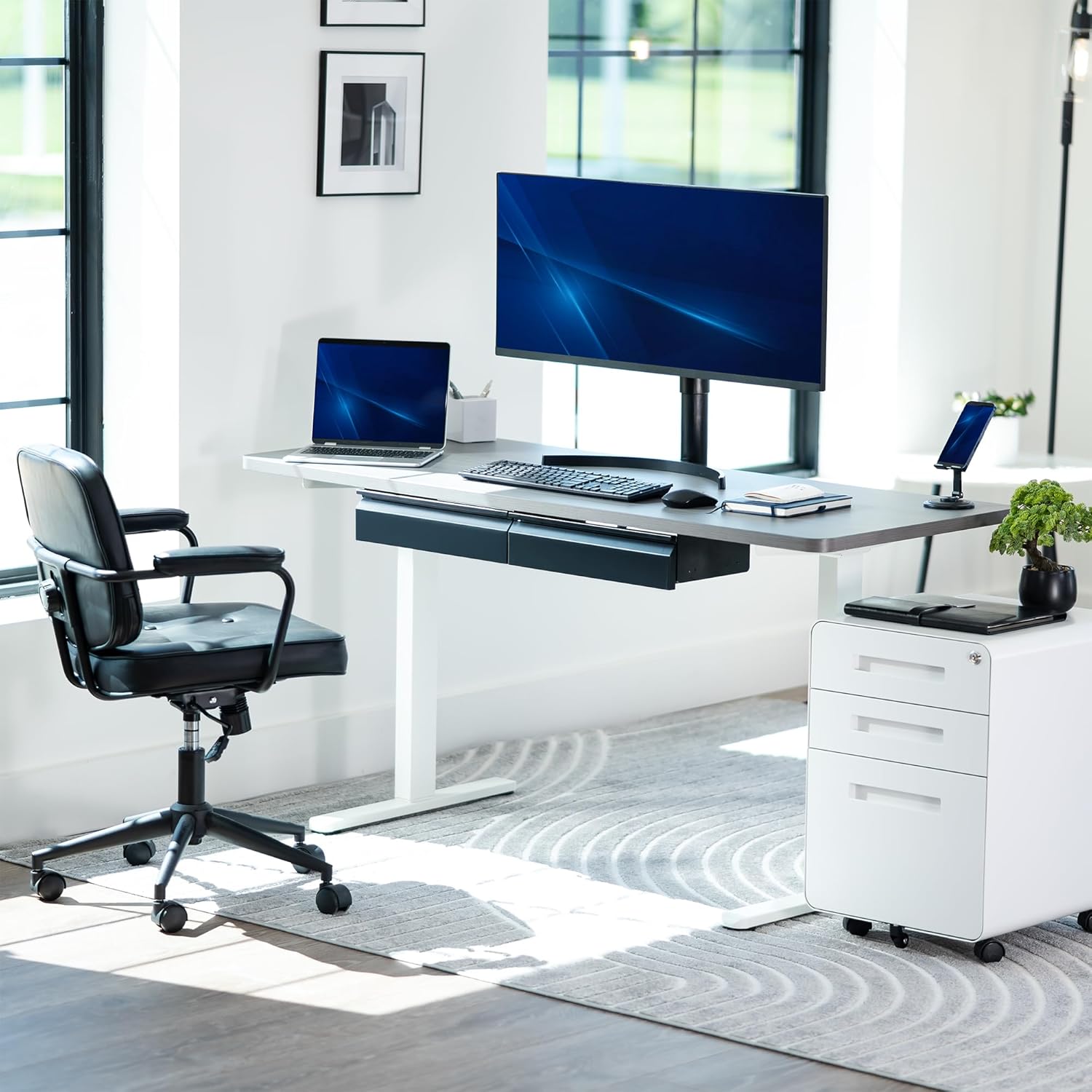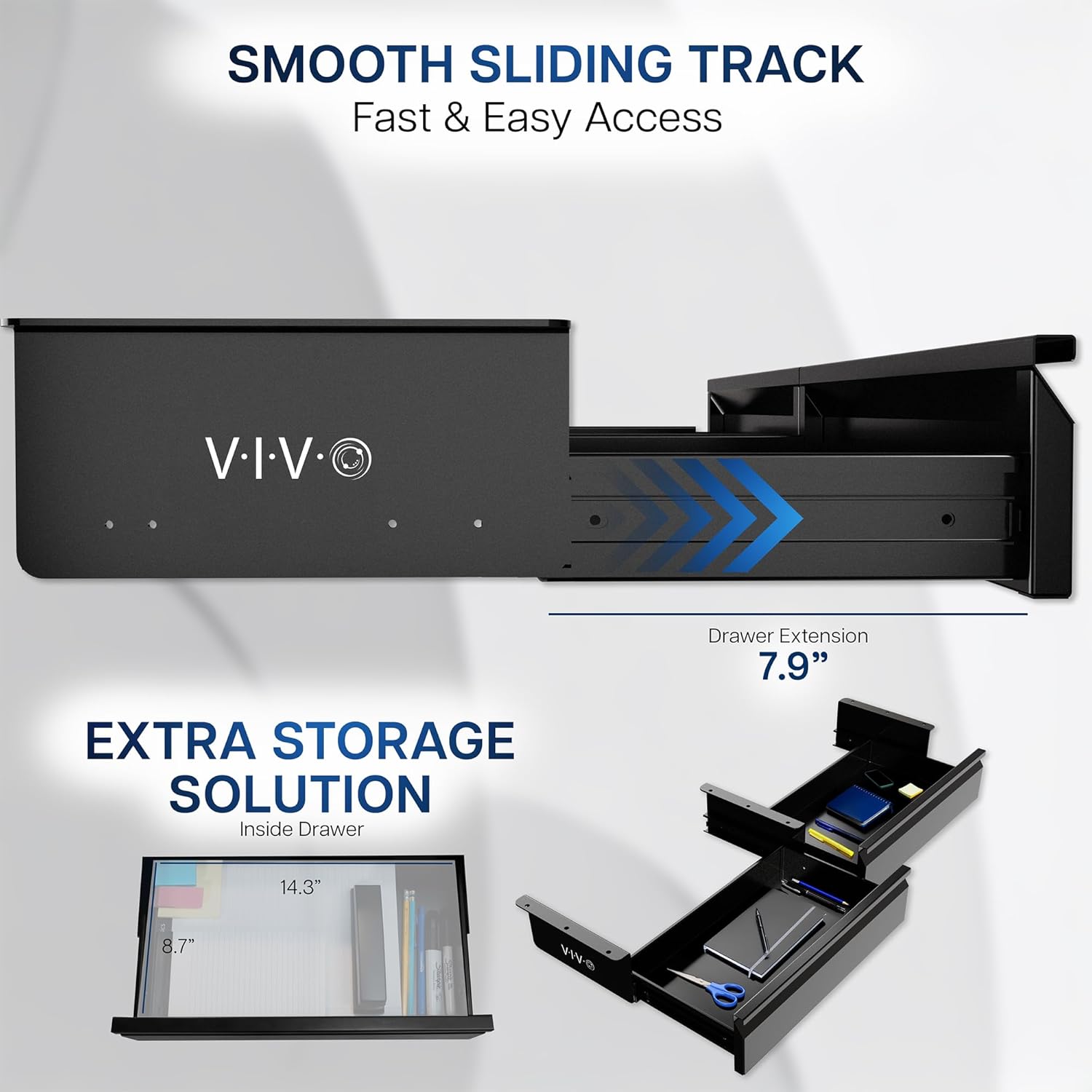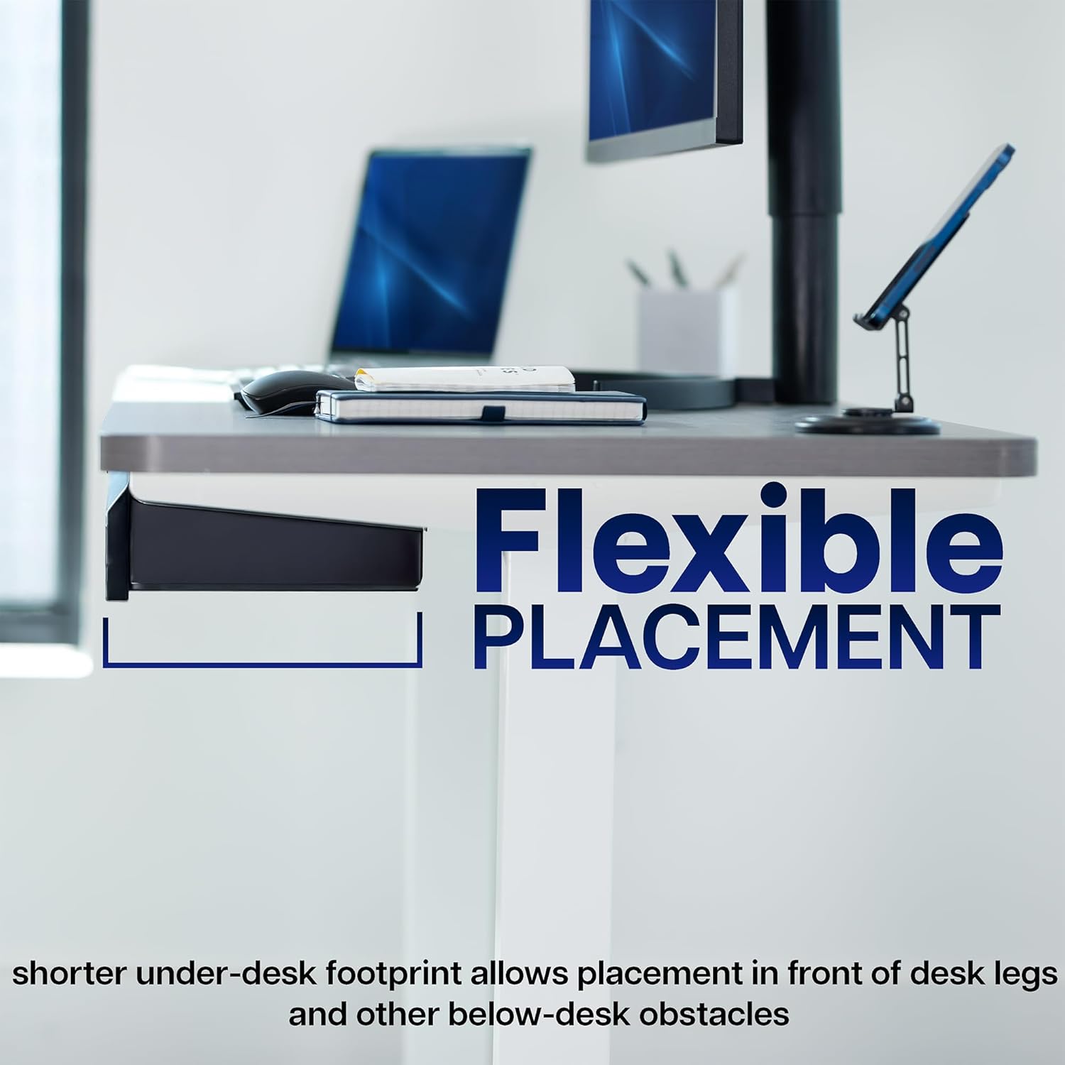- Under Desk Storage: Sturdy steel drawers (16" each) mount to the underside of your desk (at least 3/4" thick) and provide extra storage space for decluttering your area in style. Designed to fit both standing desks and standard fixed-height workstations
