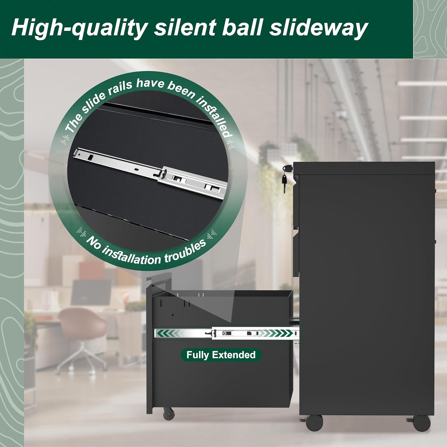 - ❤High Quality and Security -- Our Steel file cabinets are selected 0.8 mm cold-rolled steel plate,allows for more stronger support and strength, up to 330lbs, high-quality ball bearing glides ensure a lifetime of silky smooth opening and closing over many years. One lock with 2 keys secures all 3 drawers, add security to your contemporary home and office.