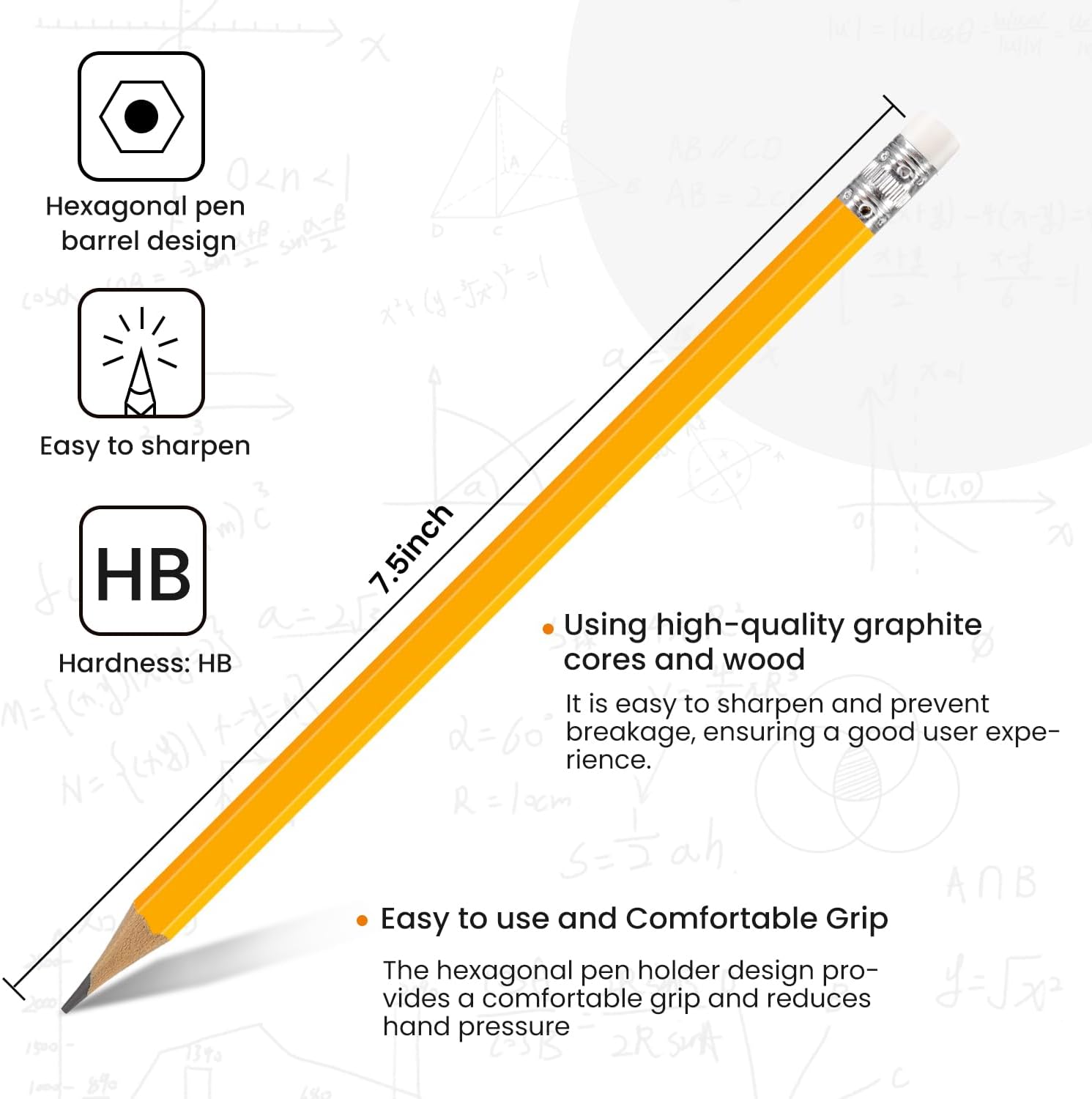 Pencils Pre-Sharpened #2 Pencil with Erasers, Yellow,7.5in 300 Pack
