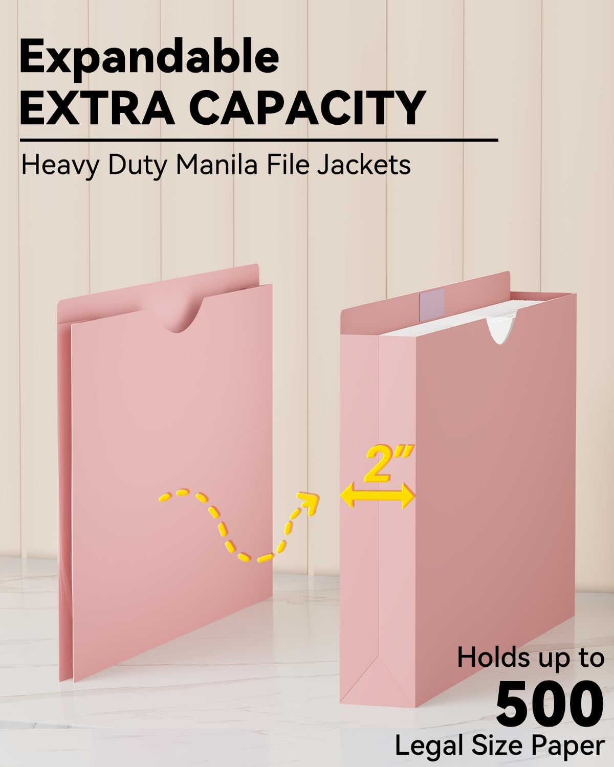 - 【EXTRA CAPACITY】 ANSOOK manila file jackets legal size has 2 inch expansion,which allow you to hold up to 500 sheets of legal size flies or A4 papers. 12 manilla folders can accommodate a variety of files