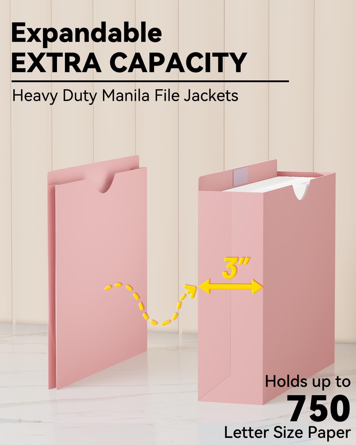 - 【EXTRA CAPACITY】 ANSOOK manila file jackets letter size has 3 inch expansion,which allow you to hold up to 750 sheets of letter size paper. 12 folders can accommodate a variety of files