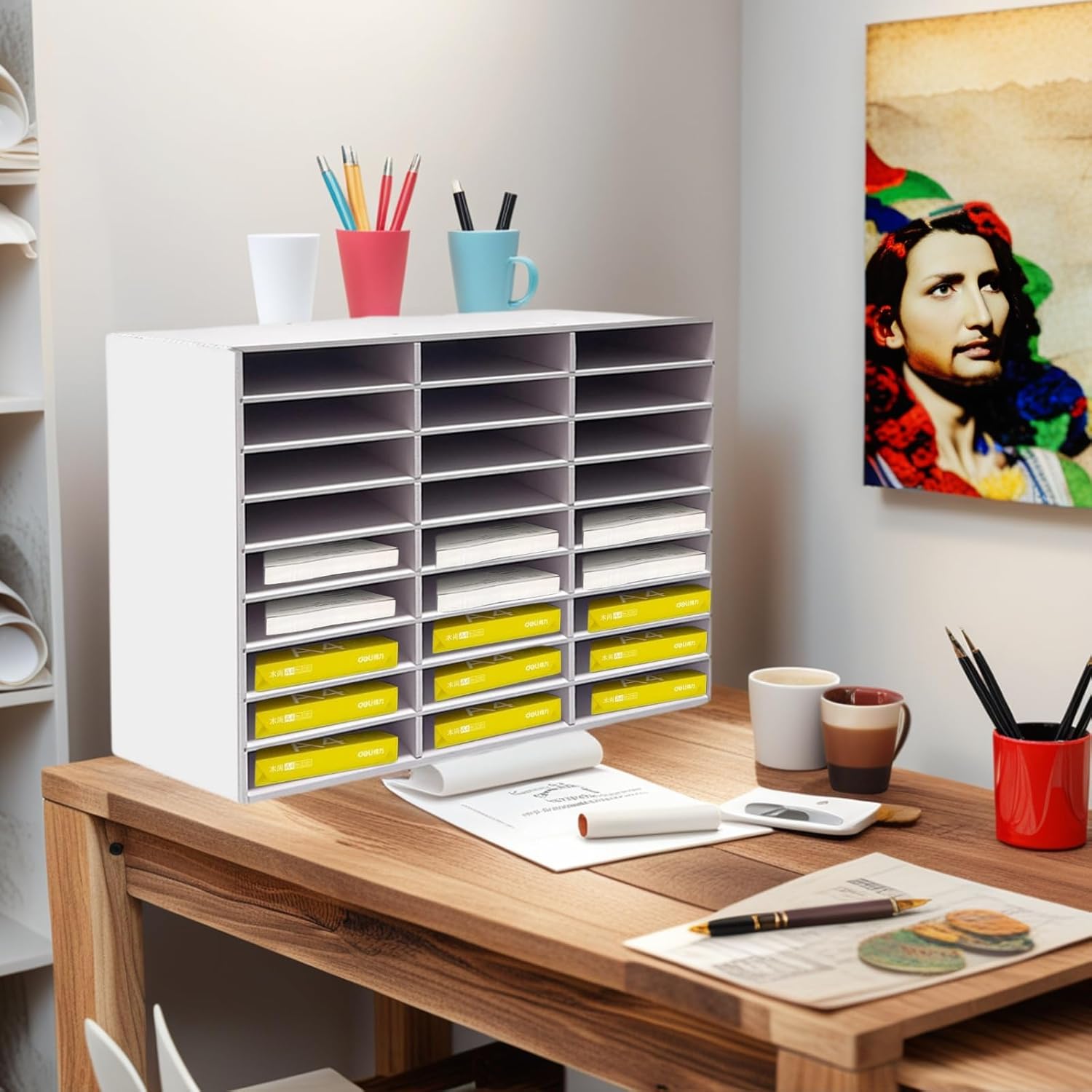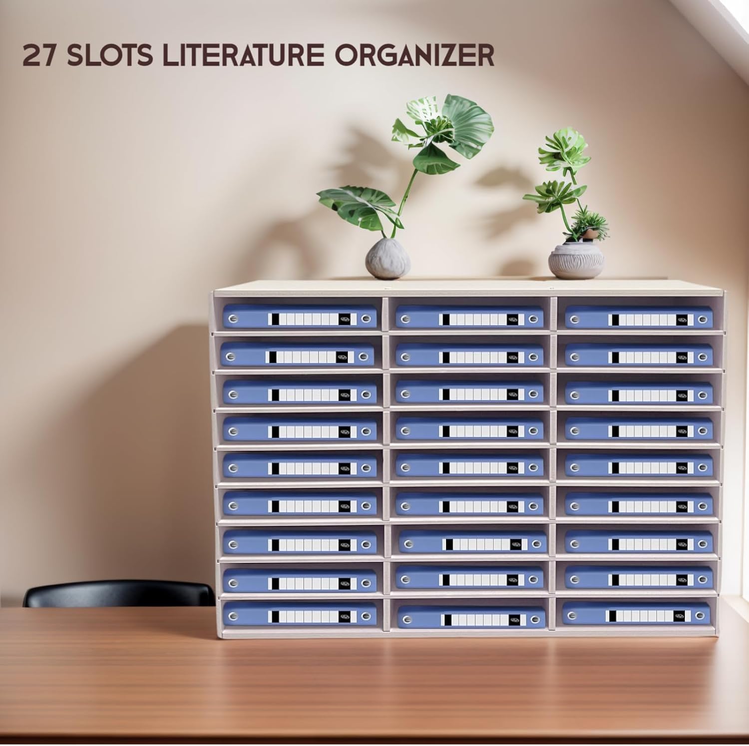 - Large Capacity Literature Organizer:Boasting 27 roomy slots (10*12*2.1in each), this organizer holds around 400 A4 sheets per slot. Removable partitions accommodate taller items, keeping your workspace tidy.