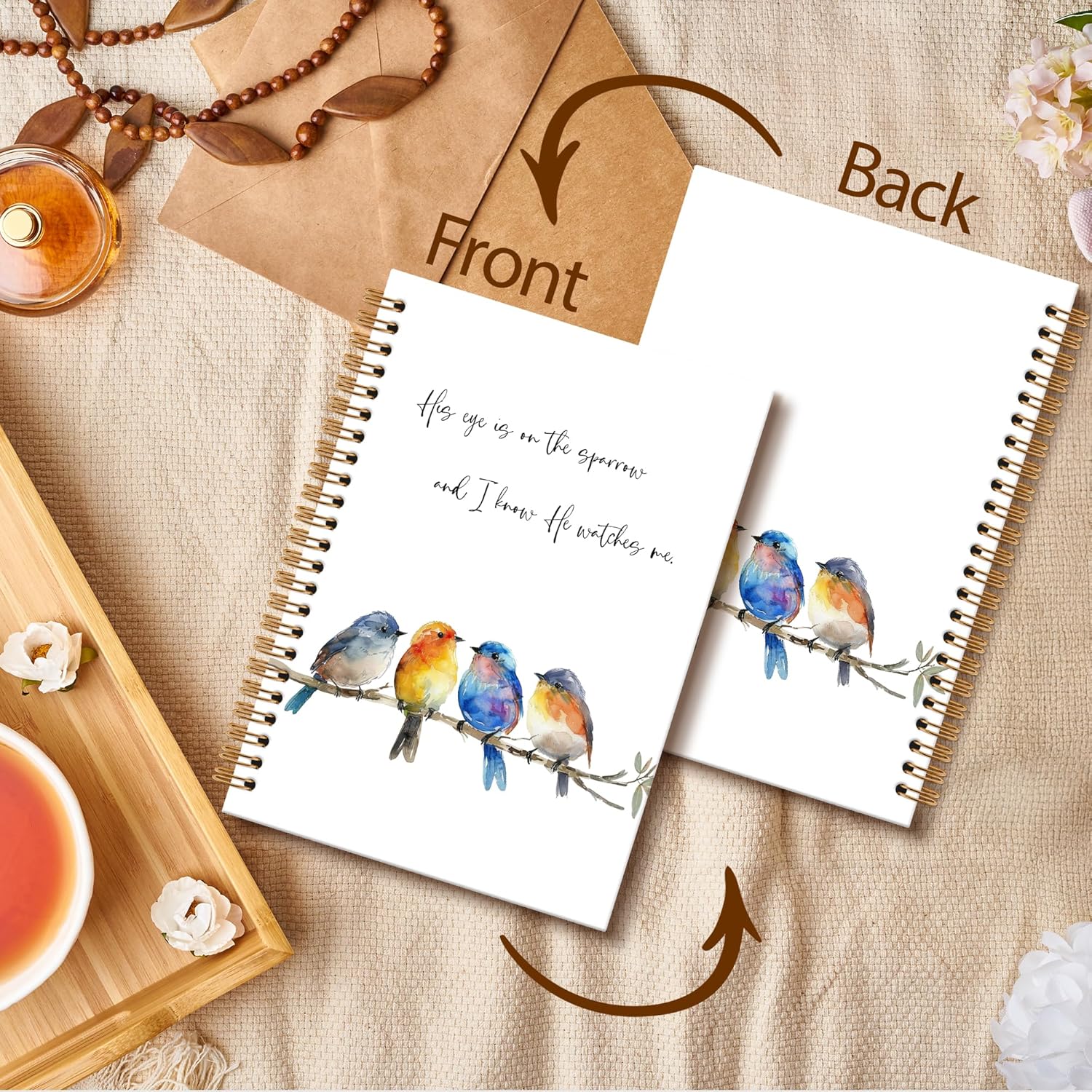 Christian Bird Sparrow Notebook Journal, Rustic Spring Bird Spiral Notebook, Sparrow Watching Notebooks Gifts for Birds Lovers Women Men, Birds Themed School Office Supplies, 6x8.2In