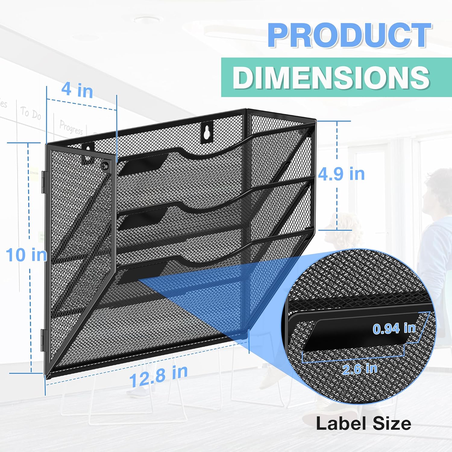 - Wall file holder organizer is made of high-quality metal materials, and has a strong metal construction and durable powder coat finish