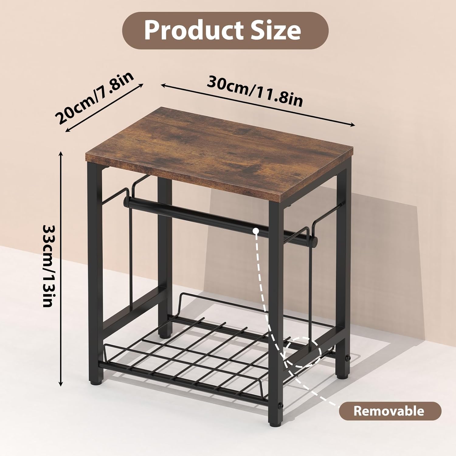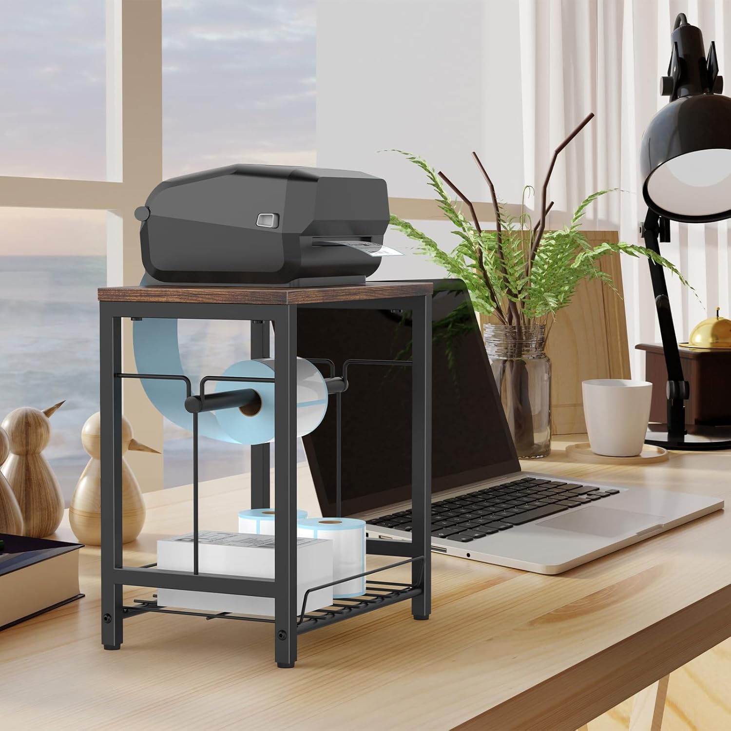 NANANARDOSO Label Holder for Thermal Printer with Basket,Wooden Label Holder for Shipping Label Printer,Sticker Roll Holder for Home, Office Small Business,Brown