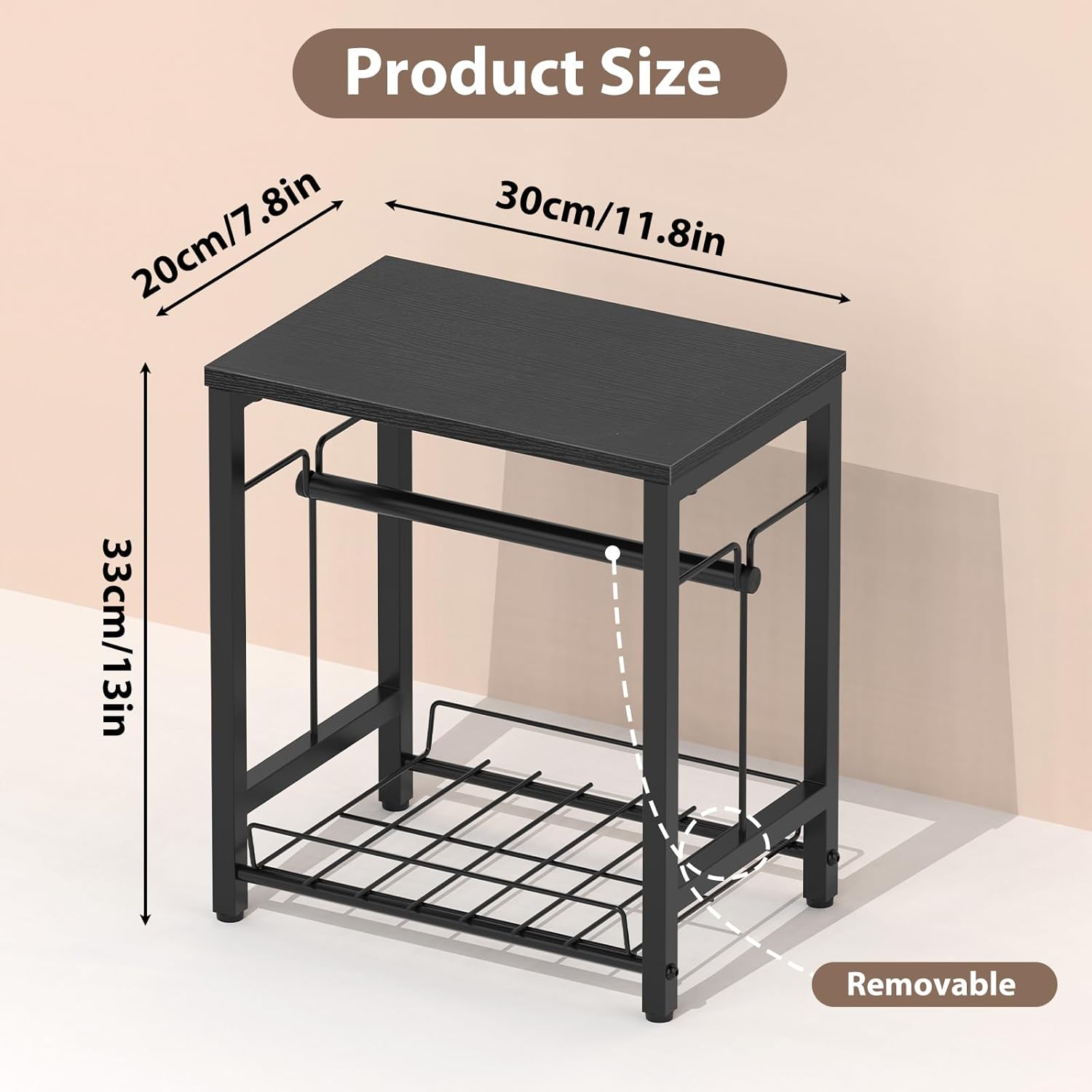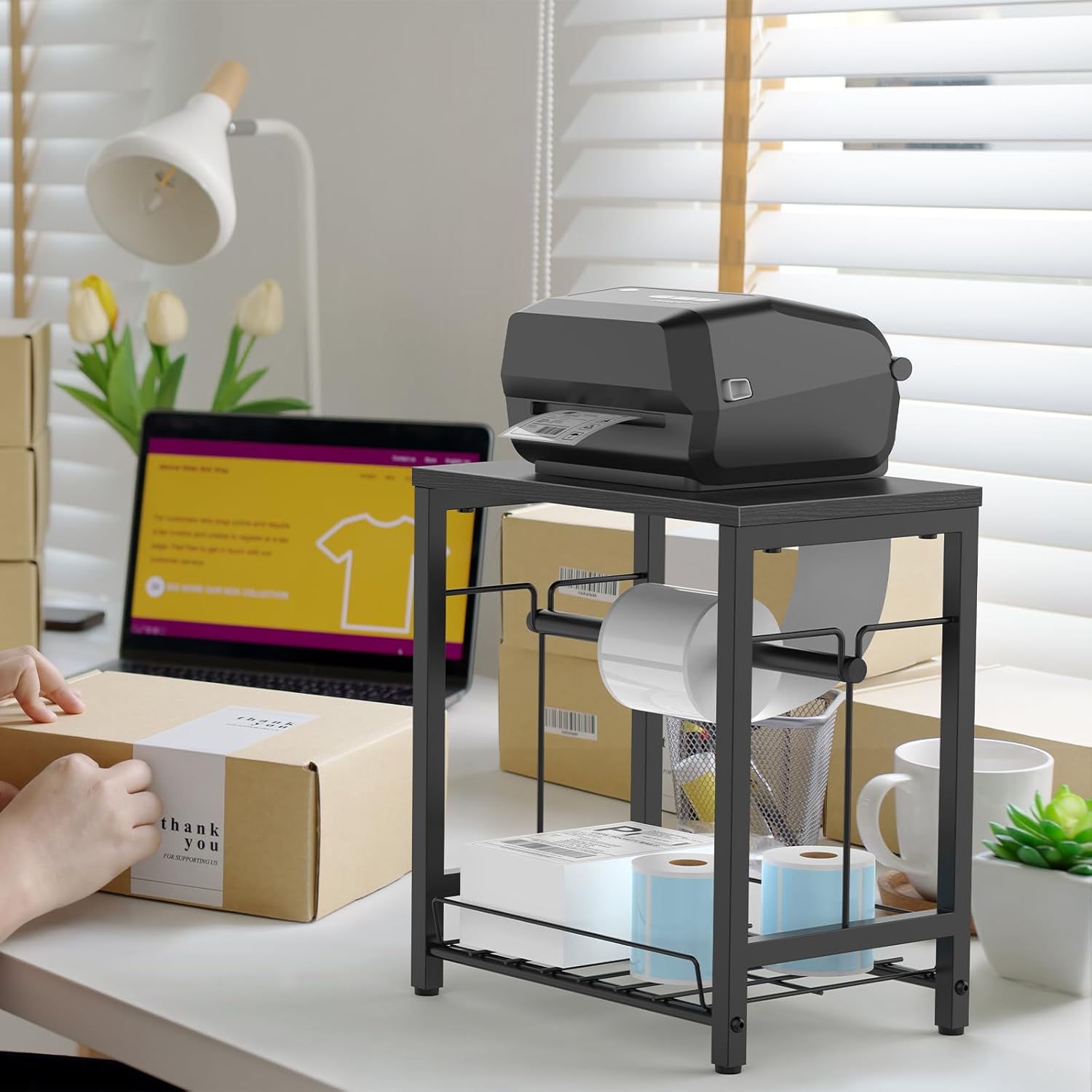 NANANARDOSO Label Holder for Thermal Printer with Basket,Wooden Label Holder for Shipping Label Printer,Sticker Roll Holder for Home, Office Small Business,Black