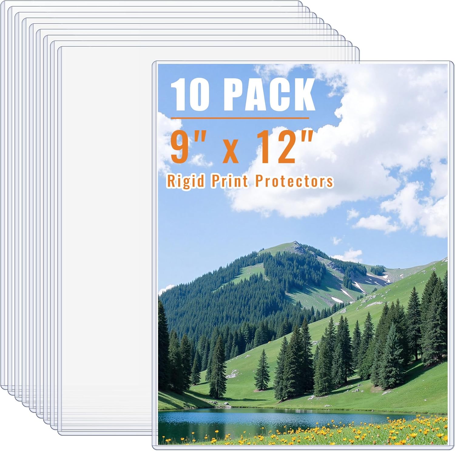 10PCS 9" x 12" Rigid Print Protectors Clear Plastic Sheet Protectors, Heavy Duty Top Loading Document Holder, Menu Cover, Photo Poster Sleeves Hard Plastic Sleeves for Paper Art Prints