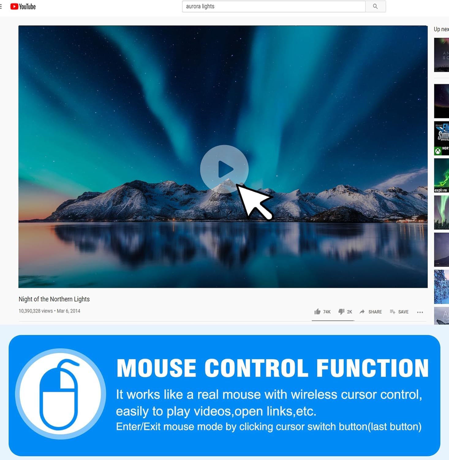 - ăBright Red Light & Long Control DistanceăA bright red light that is easy to see against most backgrounds, clearly pointing out the key points you want to emphasize; Long control distance: Air mouse range: 82FT, Wireless control range: 164FT, Light range: 656FT, makes you can freely move around the room