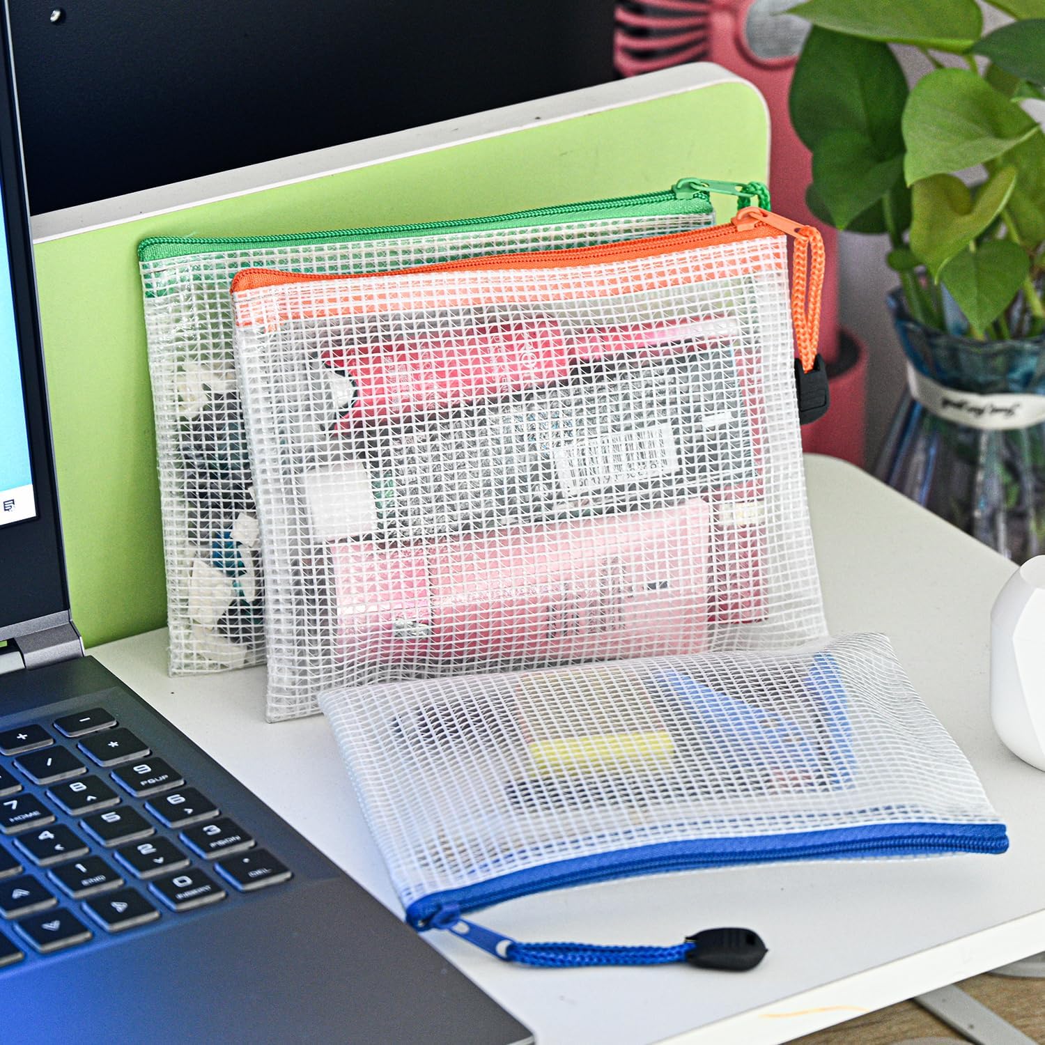 D-KINGCHY 24Pcs Zipper Storage Bags, Plastic Mesh Zippered Pouch for Organization, Waterproof Versatile Bags for Office Supplies School Travel