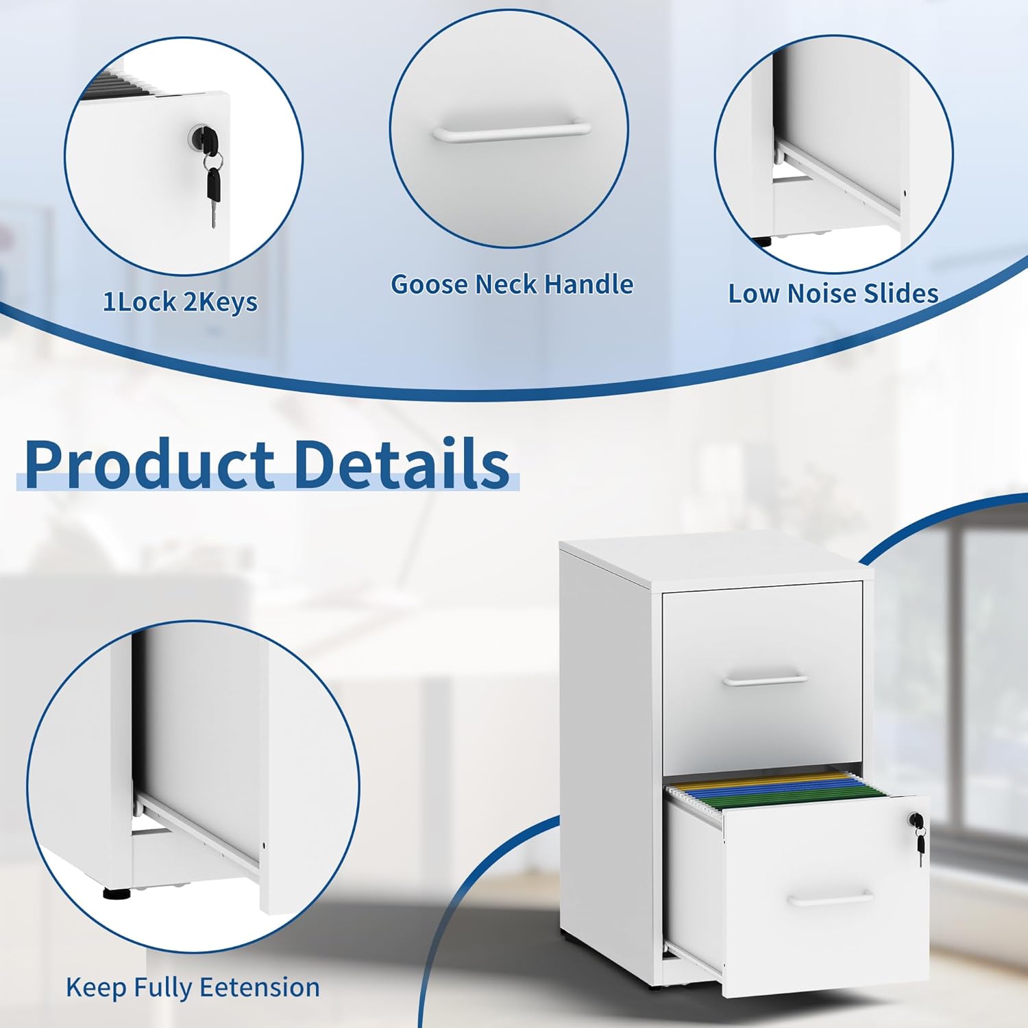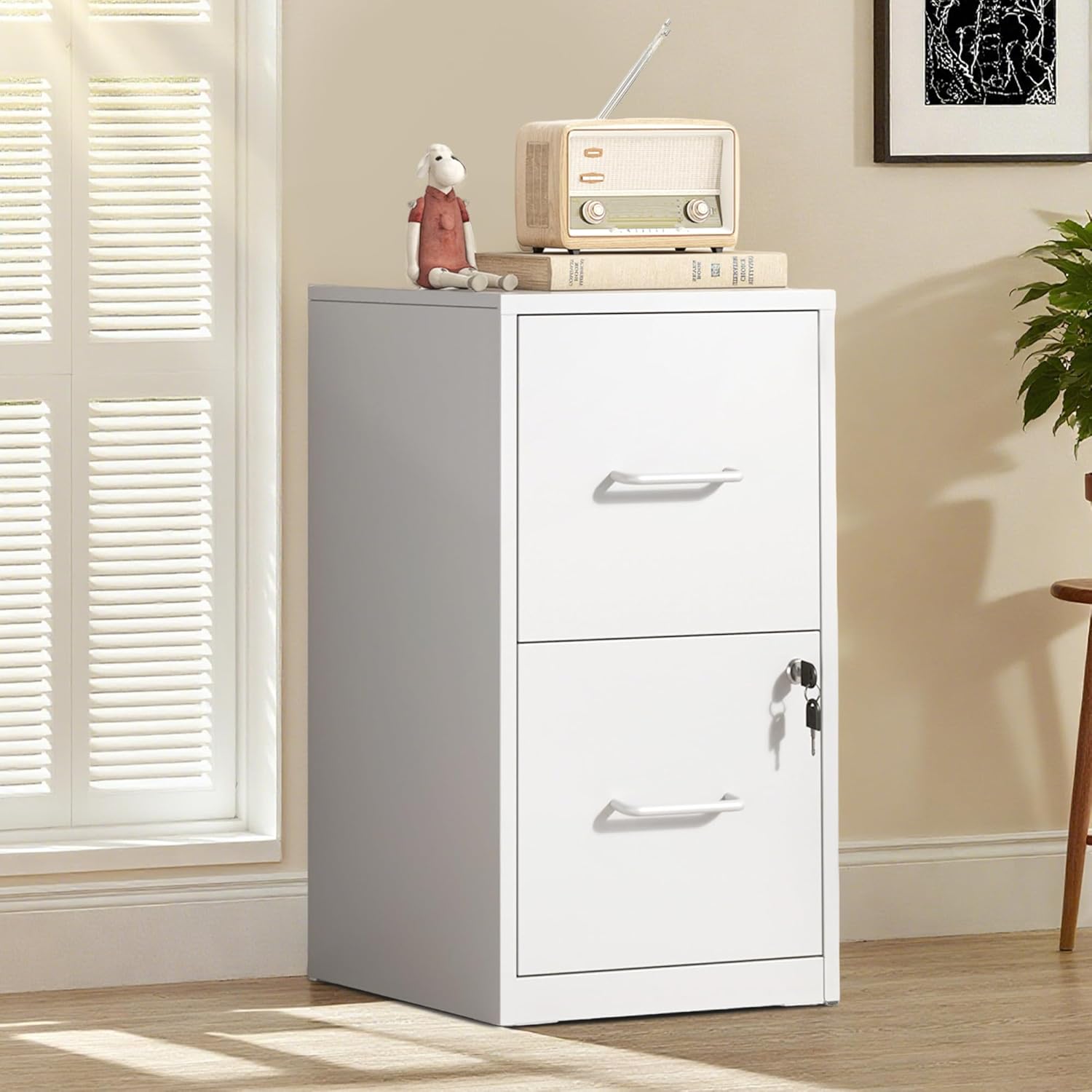 2-Drawer Locking Vertical File Cabinet, Metal Storage Cabinet for Office/Home – Secure Vertical Filing for Letter/Legal/A4/F4 Documents, Easy to Assemble Steel Cabinet (White, 2 Drawer-25 H)