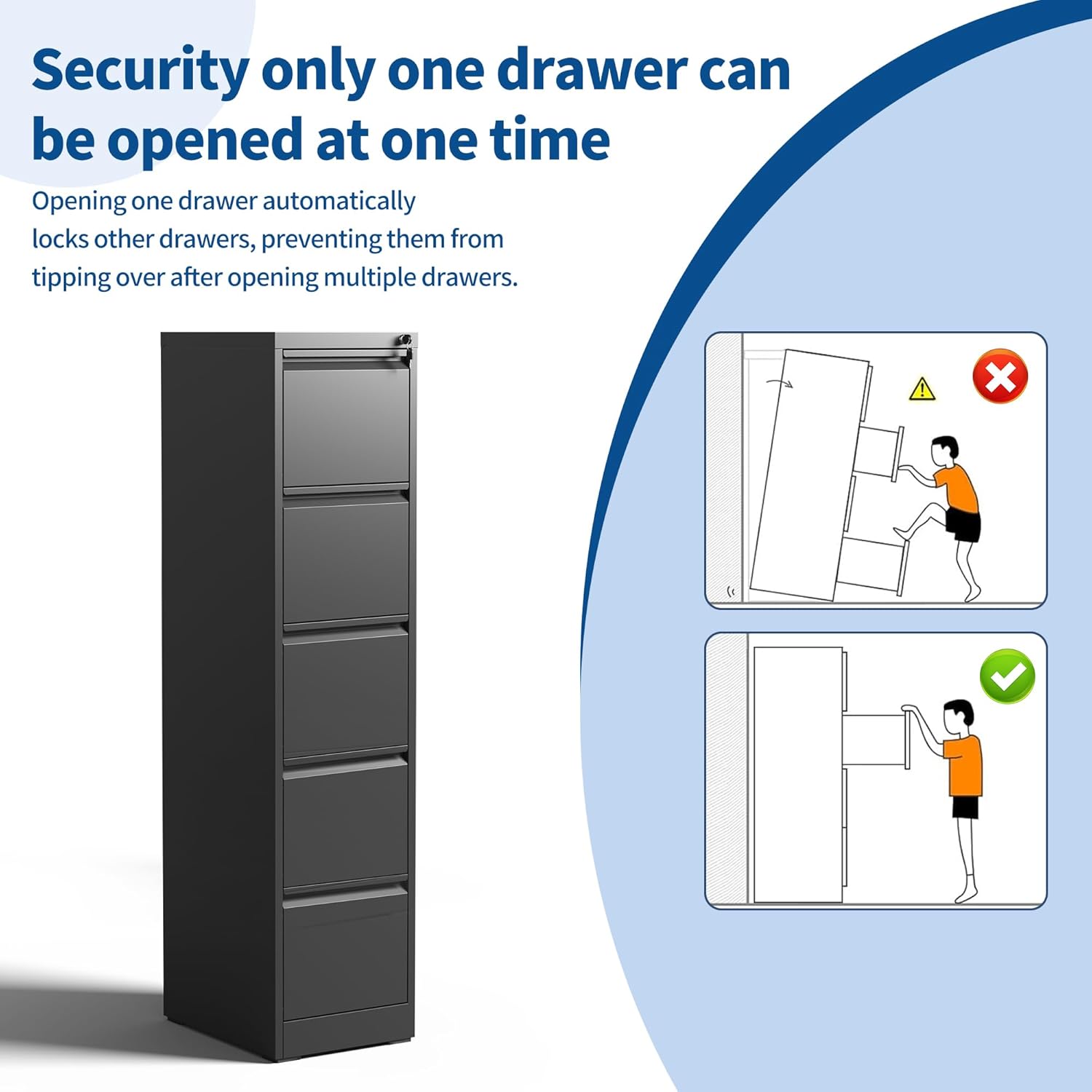 - 【Enhanced Stability & Safety】This cabinet features an anti-tip interlocking system that allows only one openable drawer at a time, preventing multiple drawers from opening at the same time, maintaining balance and preventing accidental tipping. The reinforced construction ensures long-term stability, keeping your workspace safe and tidy.