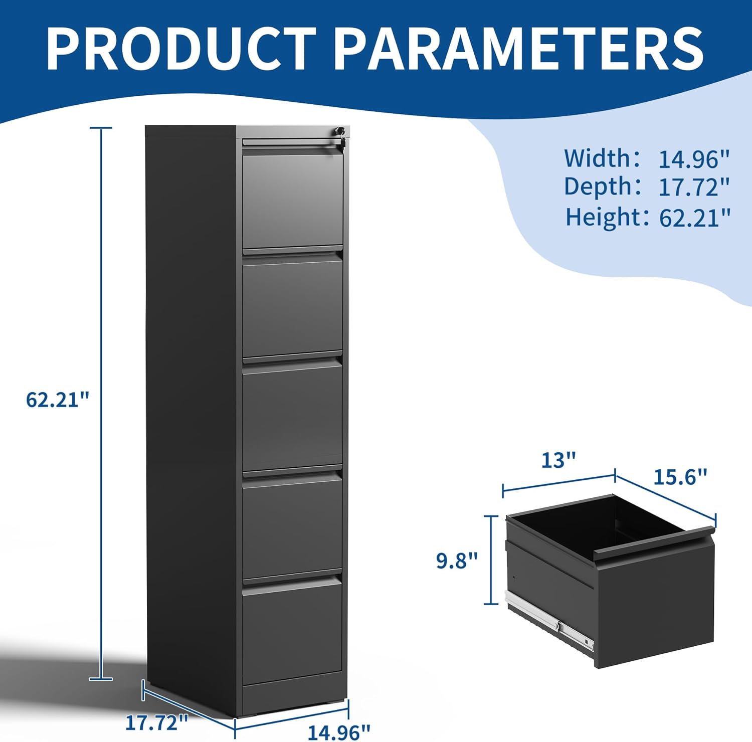 5-Drawer Locking Vertical File Cabinet, Metal Storage Cabinet for Office/Home – Secure Vertical Filing for Letter/Legal/A4/F4 Documents, Easy to Assemble Steel Cabinet (Black, 5 Drawer-64 H)