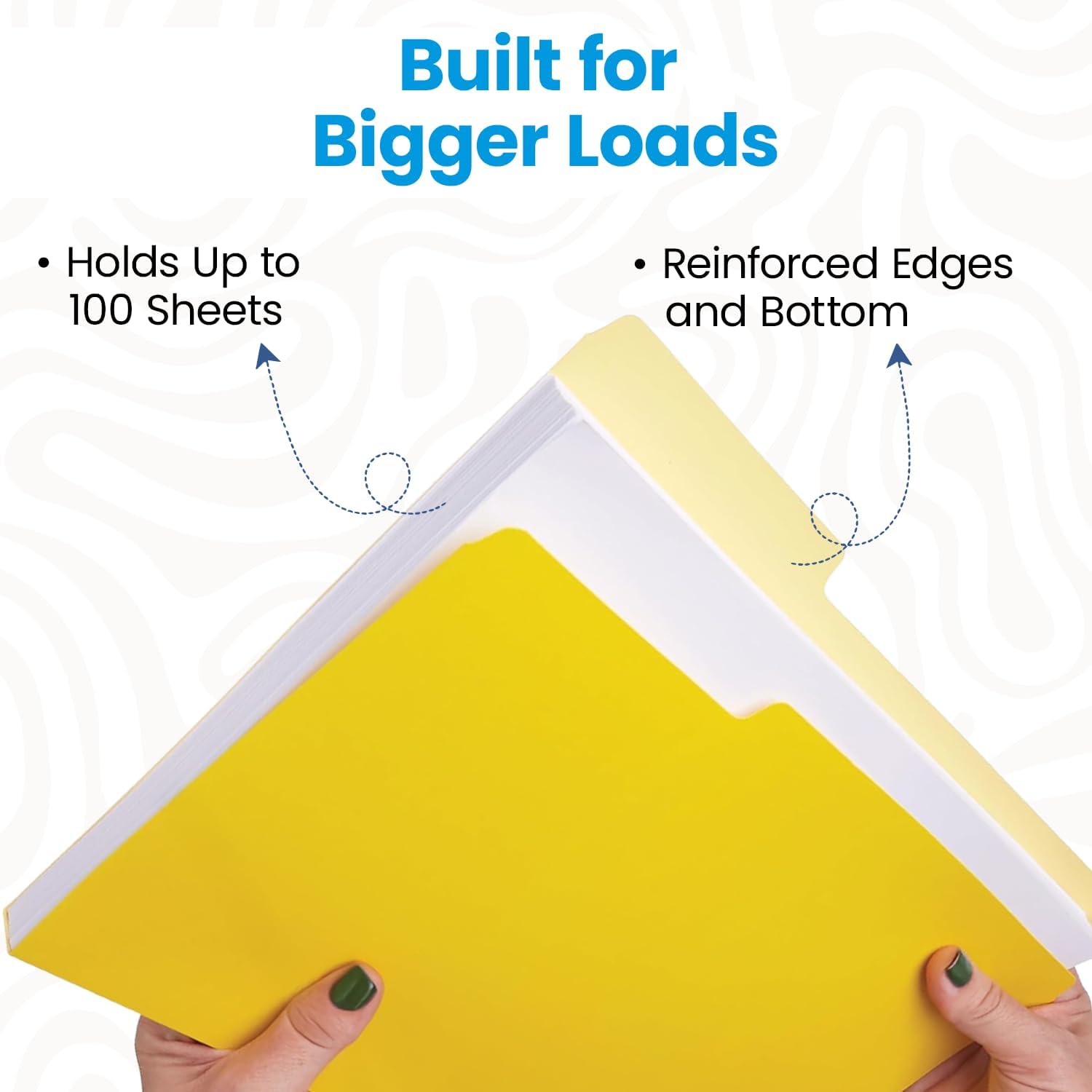- High-Quality Build: Crafted from sturdy 11 pt. paper, the hanging file folders with tabs are designed to last. The Two-Tone Colored Folders are made from strong paper material, ensuring durability for daily use. Both folders feature tabs for easy labeling and help keep your documents organized.